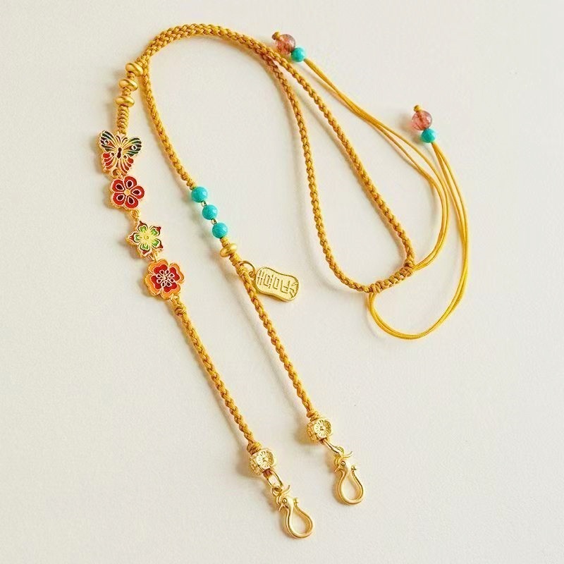 手工编织双耳如意锁吊坠挂绳男女款高档黄金八宝罗盘绳项链锁骨链