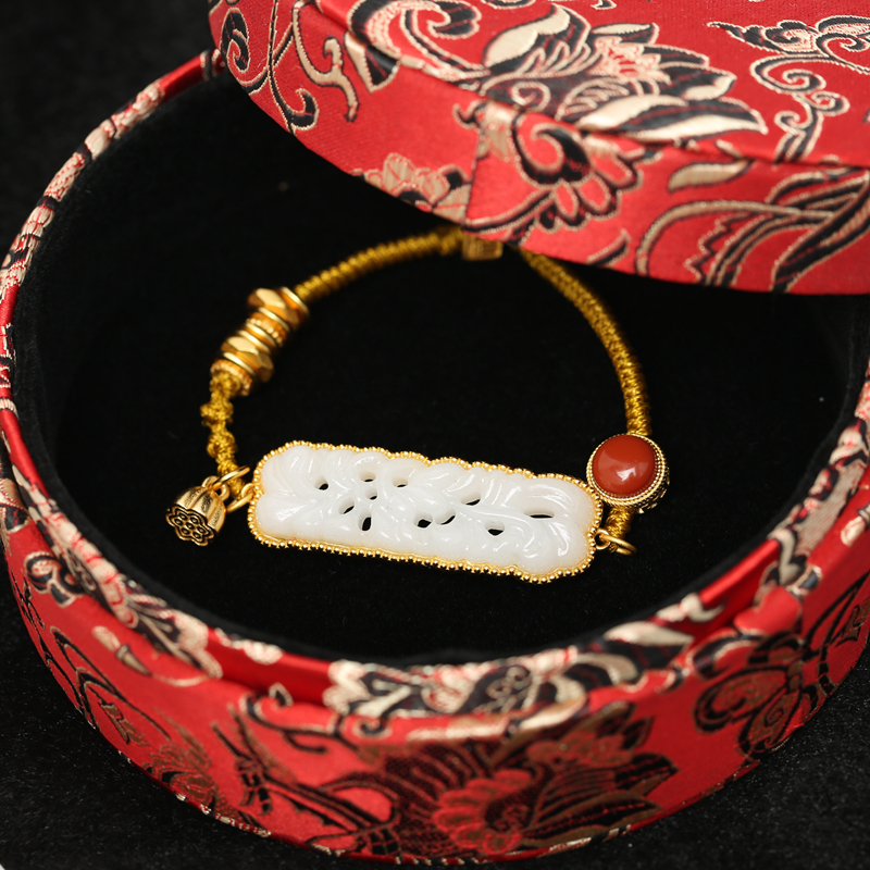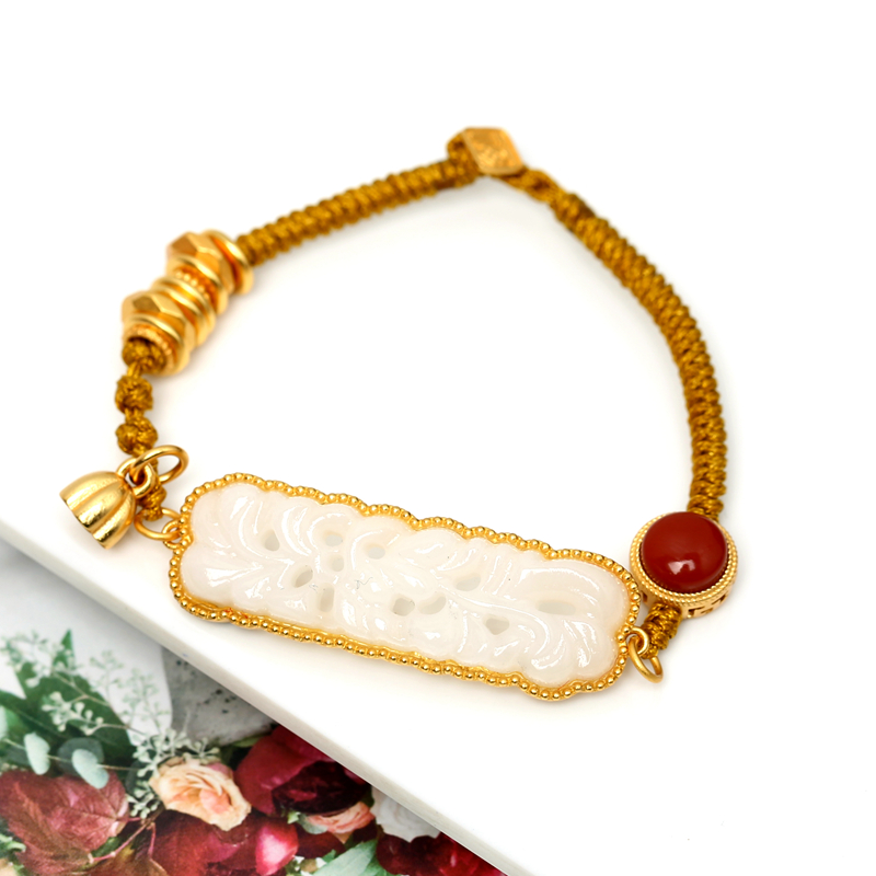 长相思小夭同款手链S925纯银镀金镶嵌天然和田玉镂空雕花手牌半镯