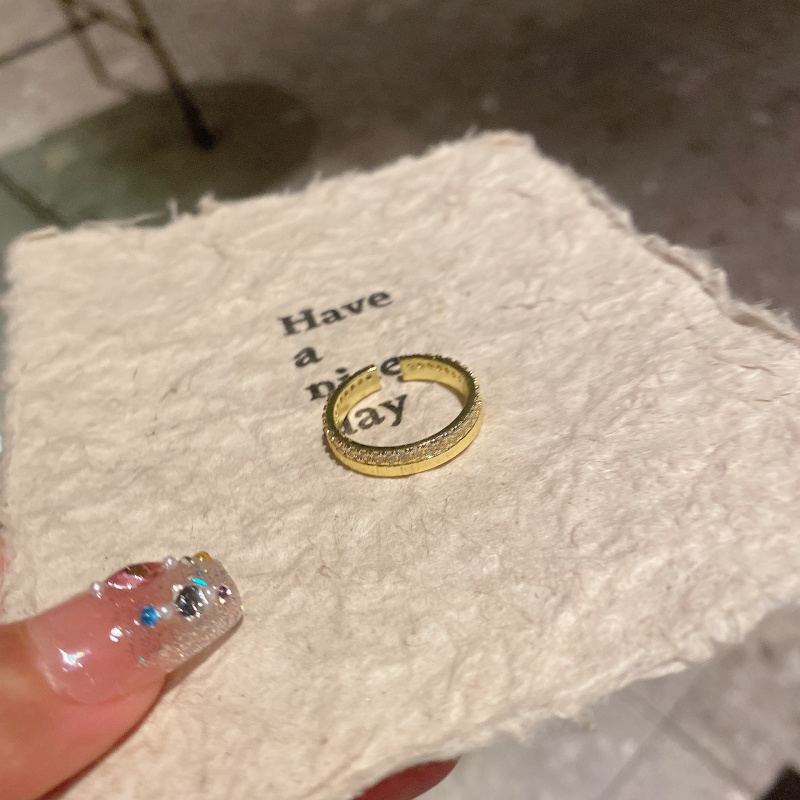 轻奢拉丝戒指单排钻细圈新贵风显瘦叠戴百搭指环星星镶嵌开口戒指