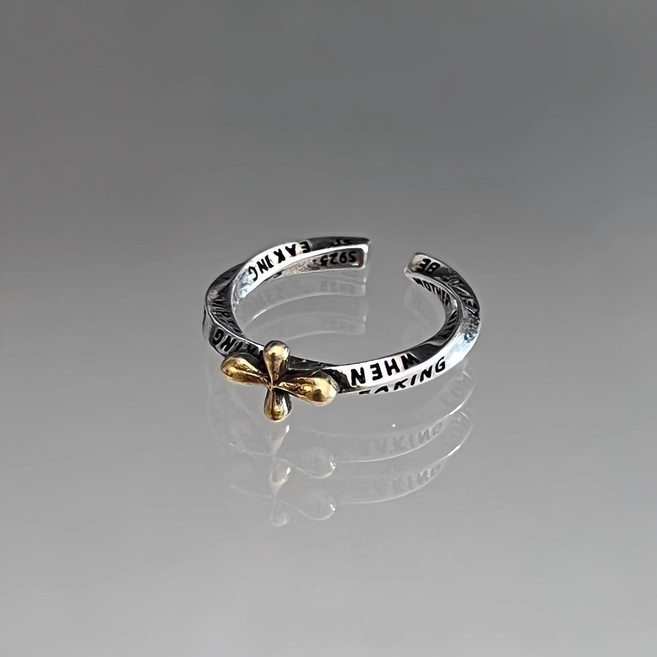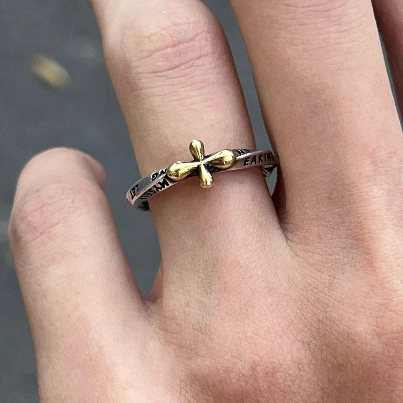 开口十字架军花浮雕戒指女复古时尚简约韩版指环嘻哈食指戒