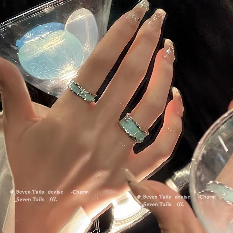 天空蓝滴胶戒指女2025年新款潮轻奢网红小众设计感简约食指戒开口