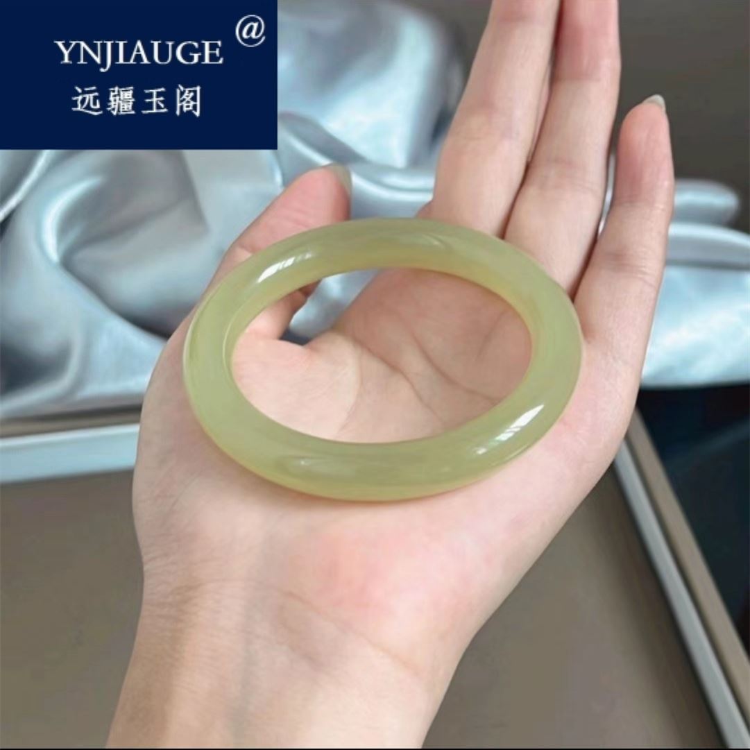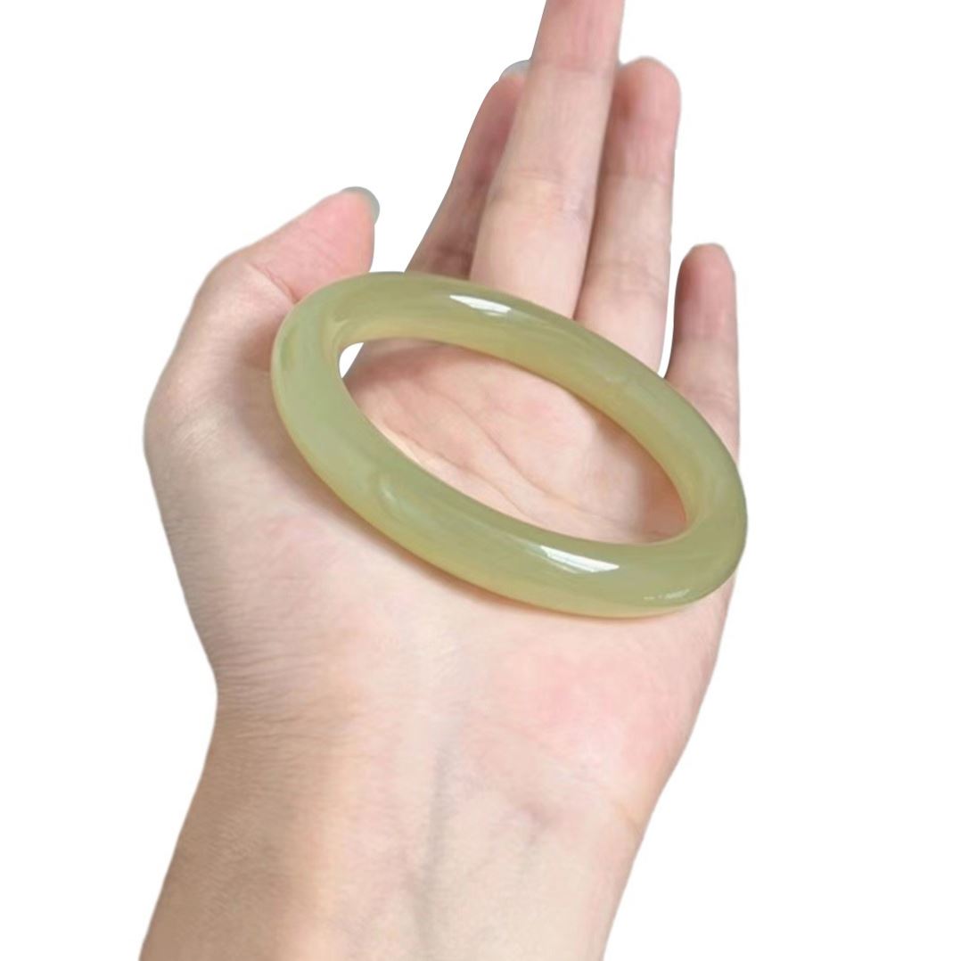 和田湖水绿色古青料阿富汗玉石手镯自然晴水料复古圆条玉石镯子