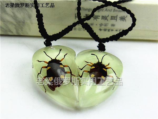 Z5昆虫琥珀情侣毛衣项链爱心双吊坠花步甲步步高升 夜光小号
