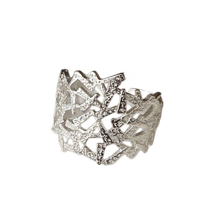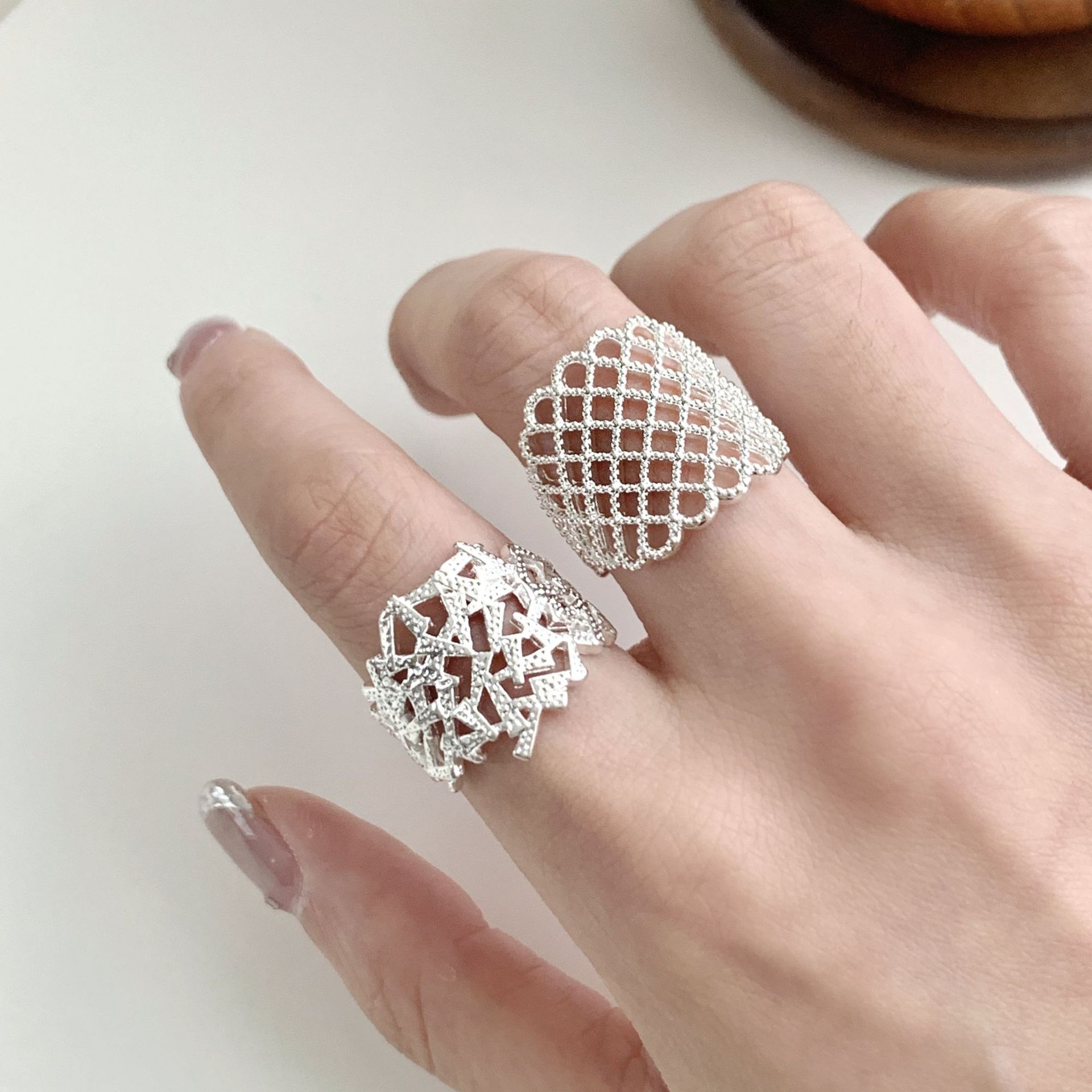 一恋蕾丝花纹镂空戒指女小众设计感气质百搭开口指环网红宽边食指