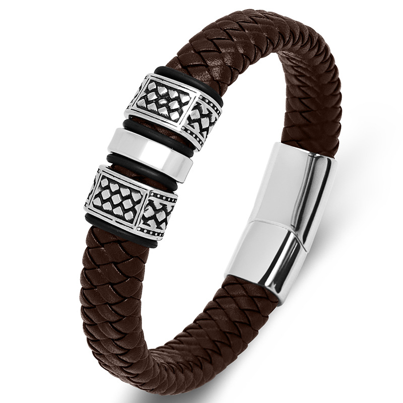 2025蛇年平安扣转运红绳男款皮质编织手链本命年化解护身红色手绳