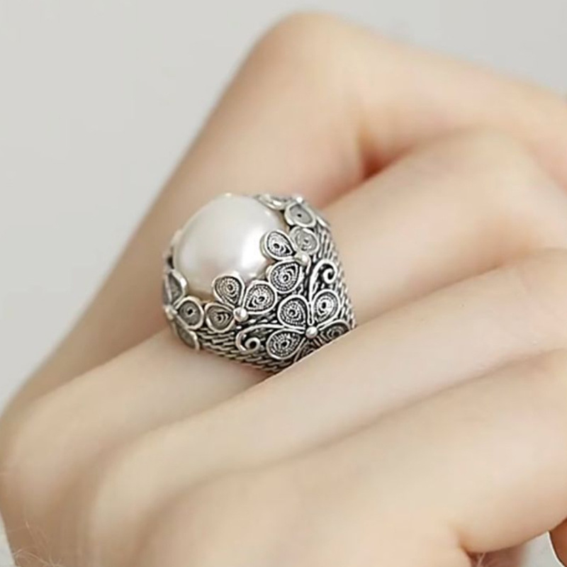 新款花丝镶嵌戒指复古做旧国潮花朵气质文艺范轻奢高级感