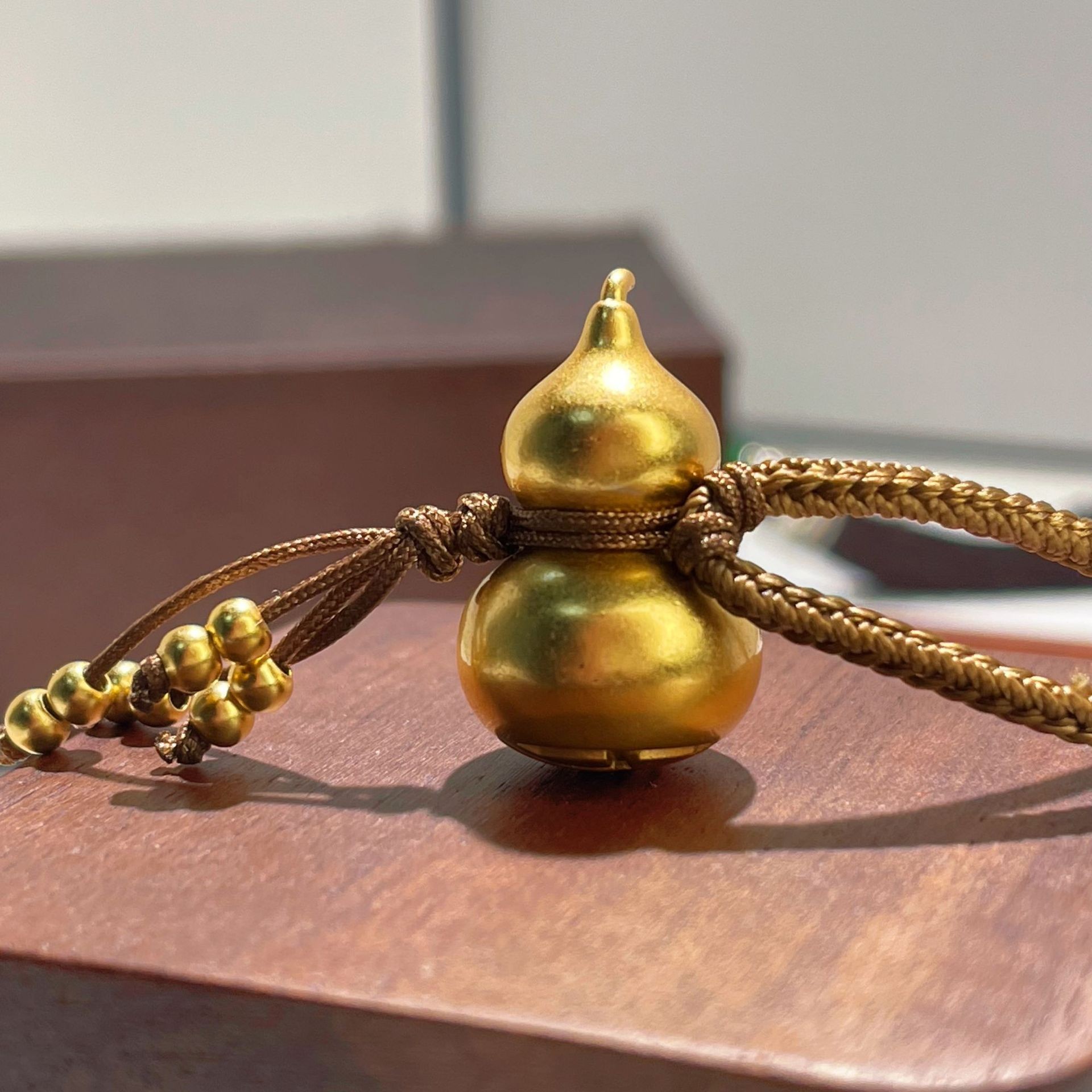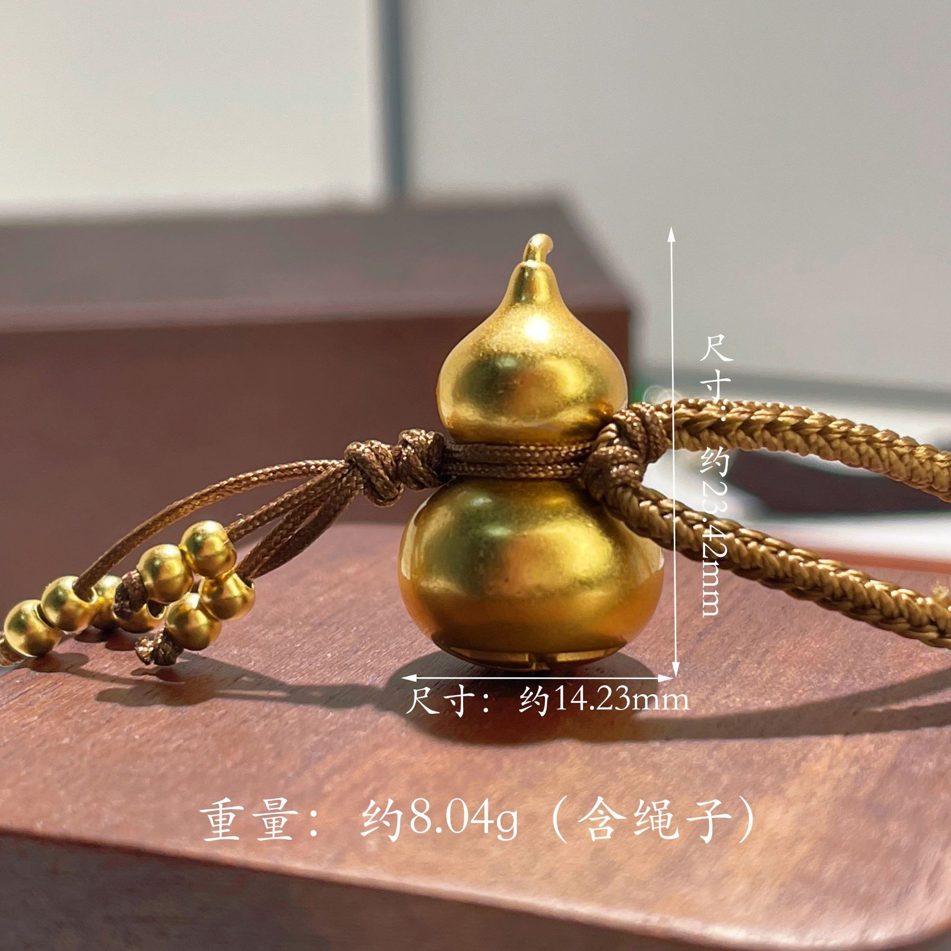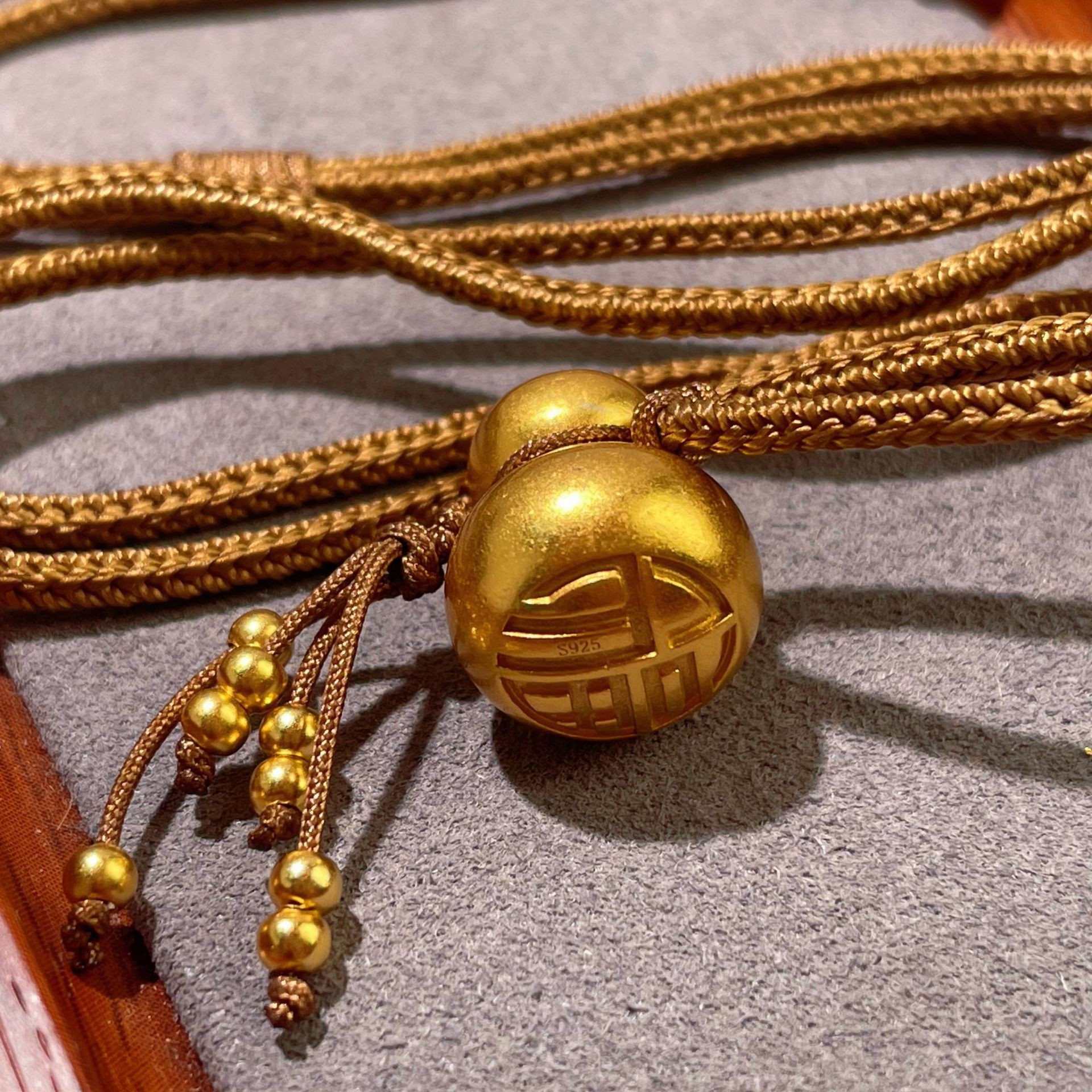 s925纯银镀黄金色古法磨砂福禄葫芦编织绳毛衣链挂坠项链男女通用