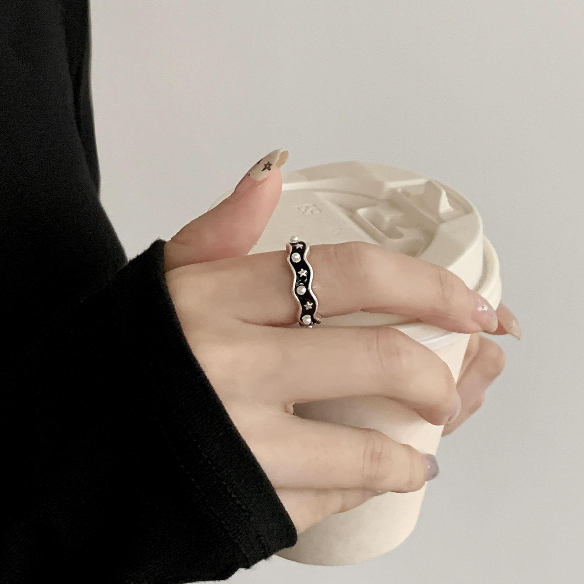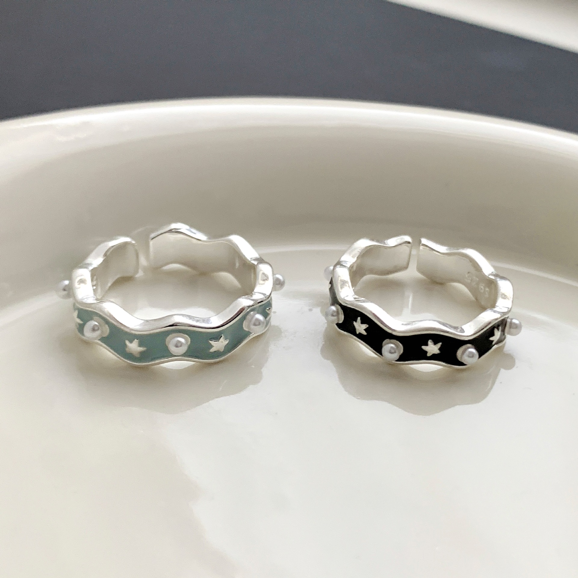 设计感精致星河戒指女时尚几何甜酷星星滴釉开口指环小众食指戒潮