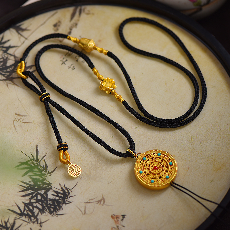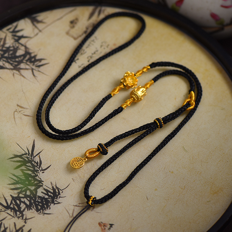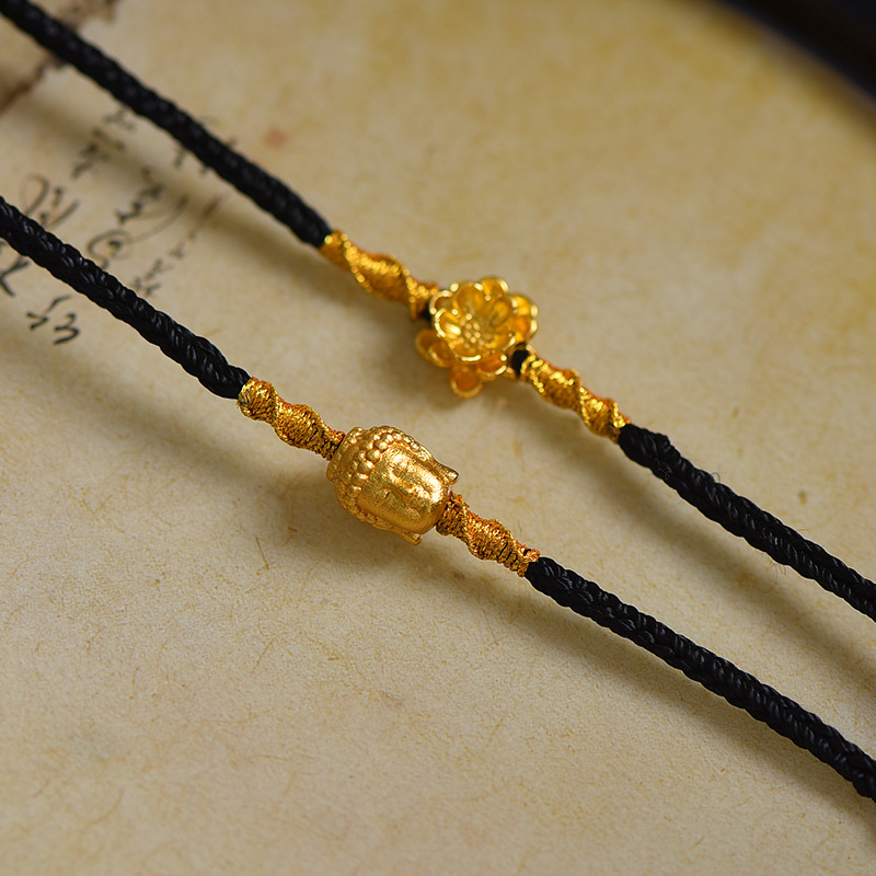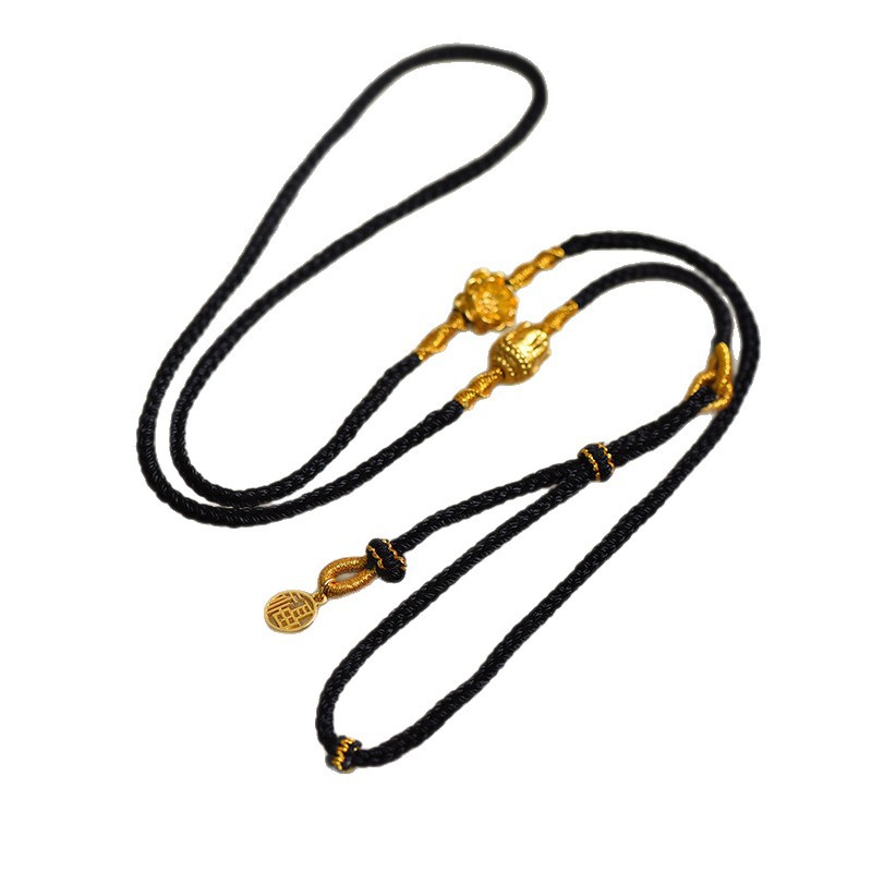 手工编织唐卡挂绳本命年沙金佛头翡翠黄金佛牌吊坠链民族风项链绳