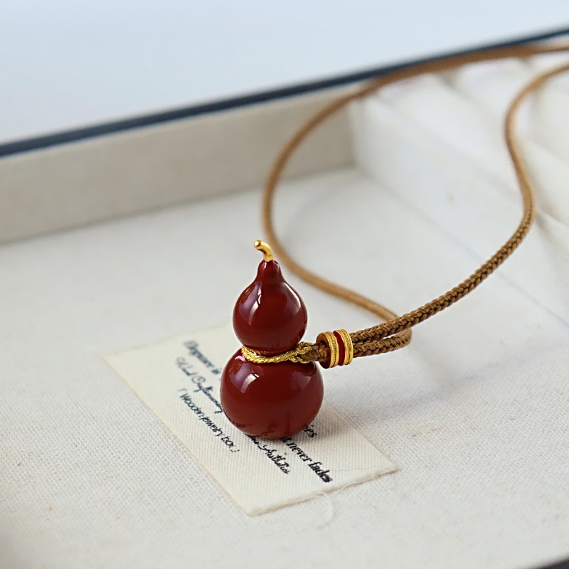 新中式葫芦滴油长毛衣链女福禄项链手工编织绳红色葫芦珐琅吊坠