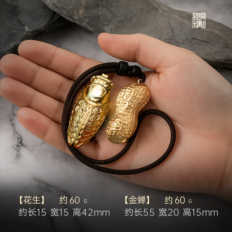 新铜时代《好事花生》纯黄铜吊坠汽车挂件钥匙礼品寓意好事伴手礼