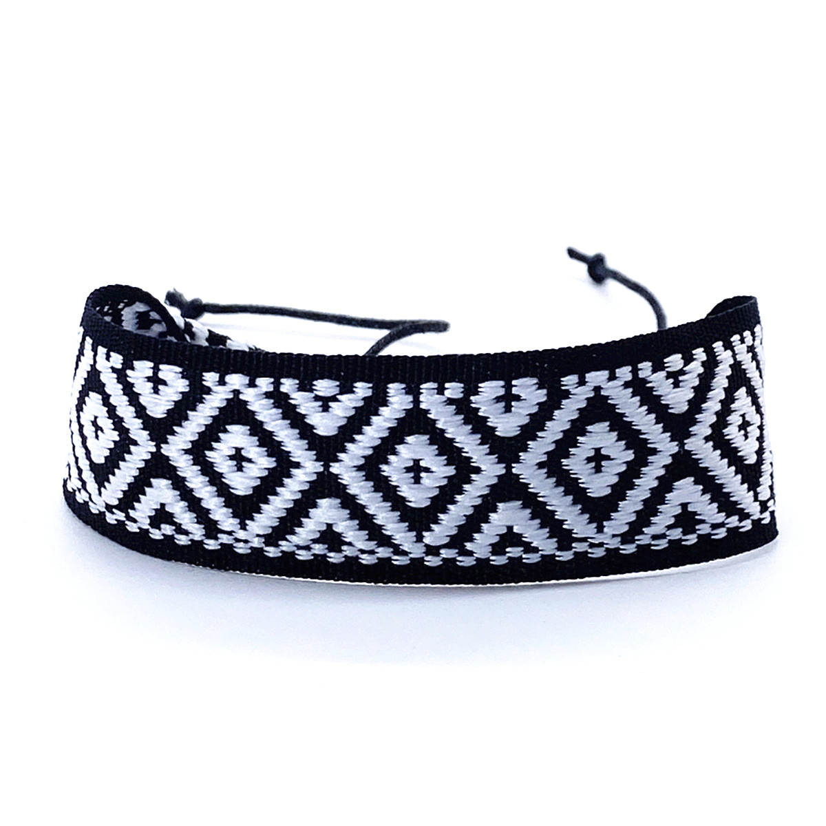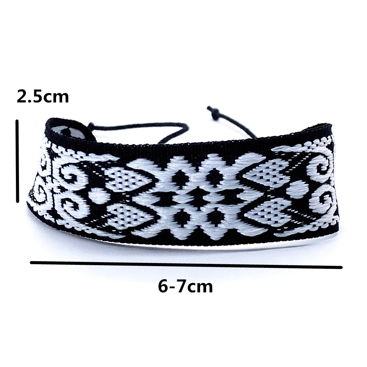 黑白色宽民族文艺风波西米亚情侣手绳编织布艺手链男女士手环饰品