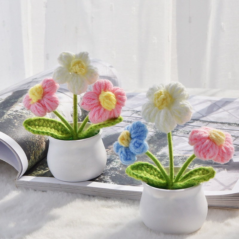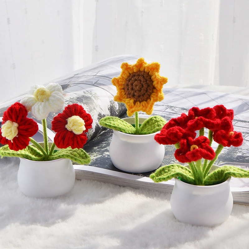 2025新款手工编织仿真向日葵毛线花艺家居装饰卧室客厅温馨挂饰