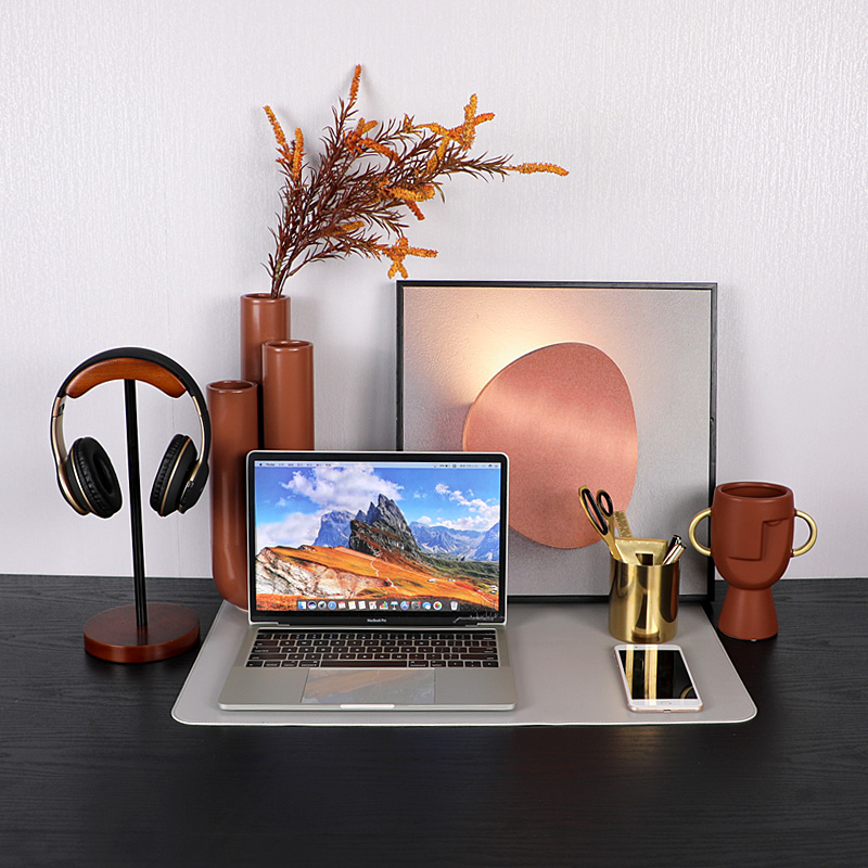 轻奢样板间书房搭配套装书桌装饰挂画笔筒笔记本电脑模型软装道具