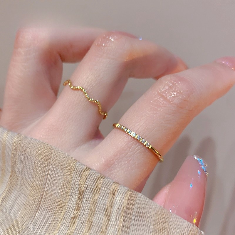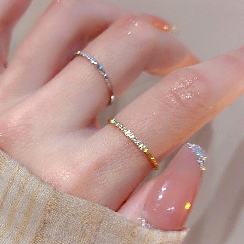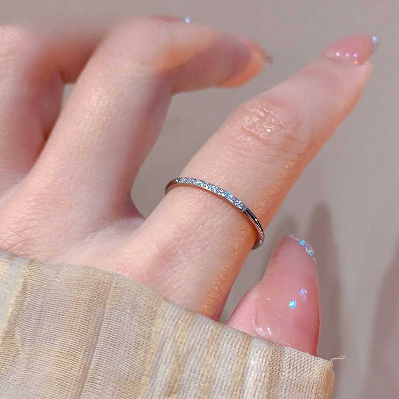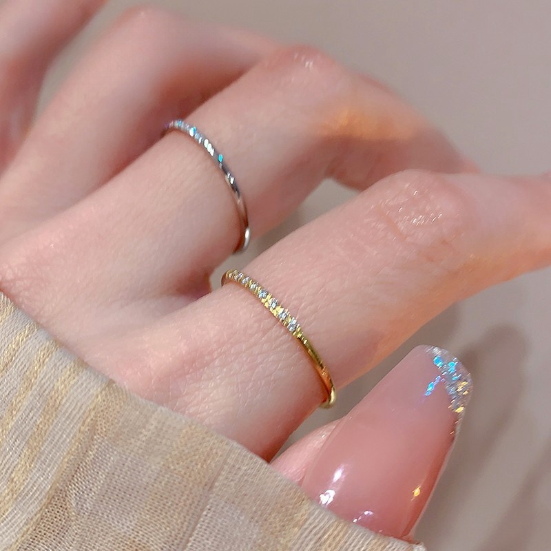 定制镀16k金素圈闪半排设计极细镶钻戒指高级百搭叠戴轻奢食指戒