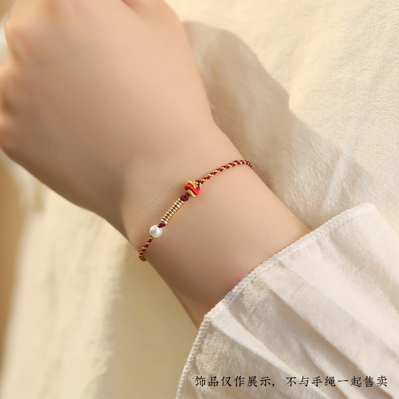 本命年红绳手链编绳diy半成品可穿珠黄金铜钱珍珠平安扣编织手绳