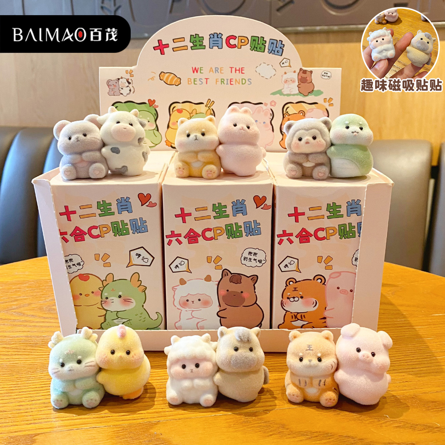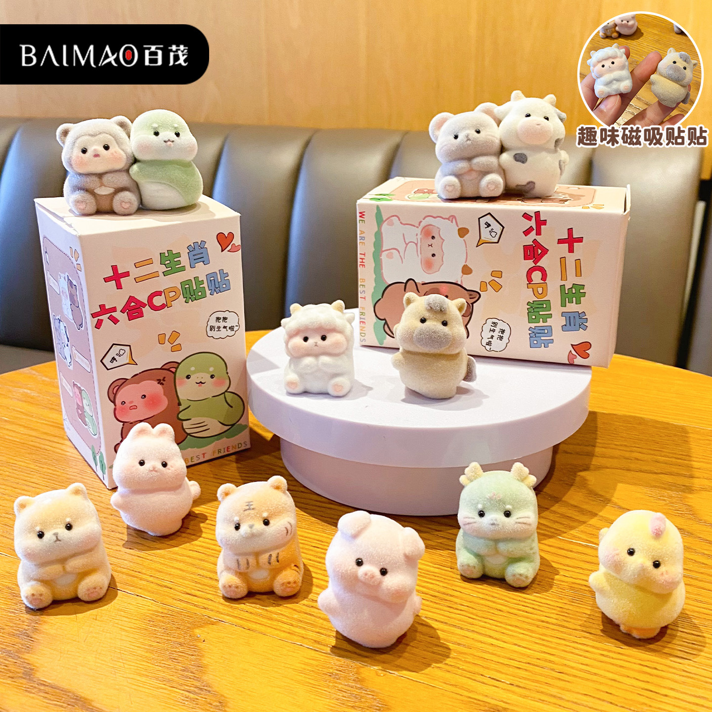 百茂原创十二生肖六合情侣树脂摆件可爱植绒贴贴磁吸公仔摆件礼品
