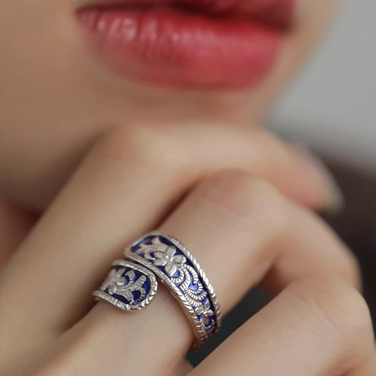 精致交叉花纹浮雕戒指女几何时尚个性设计感开口指环网红食指戒潮
