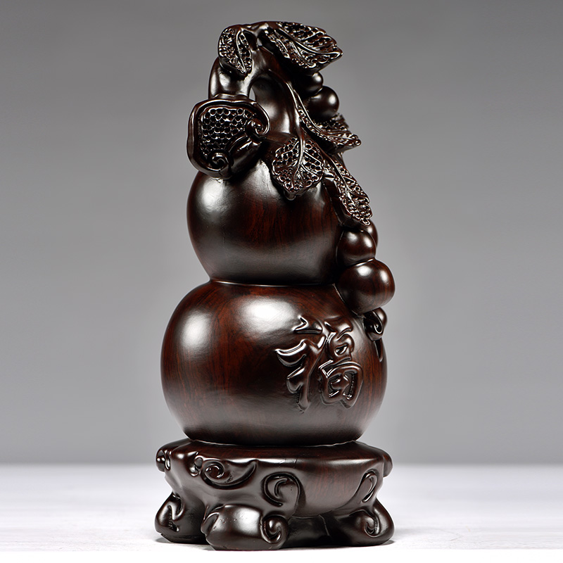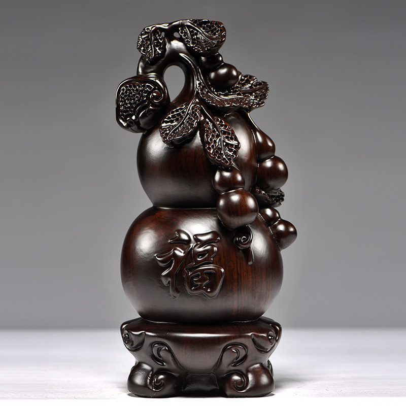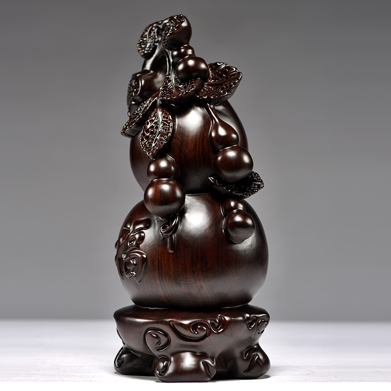 黑檀实木雕刻葫芦摆件客厅家居办公室装饰红木工艺品摆设开业送礼