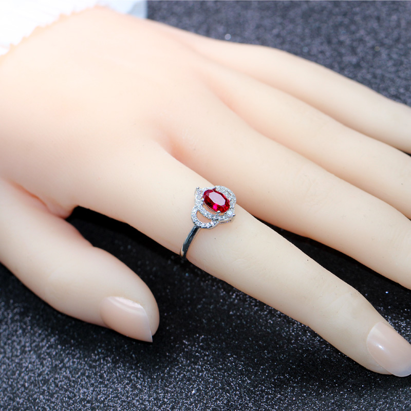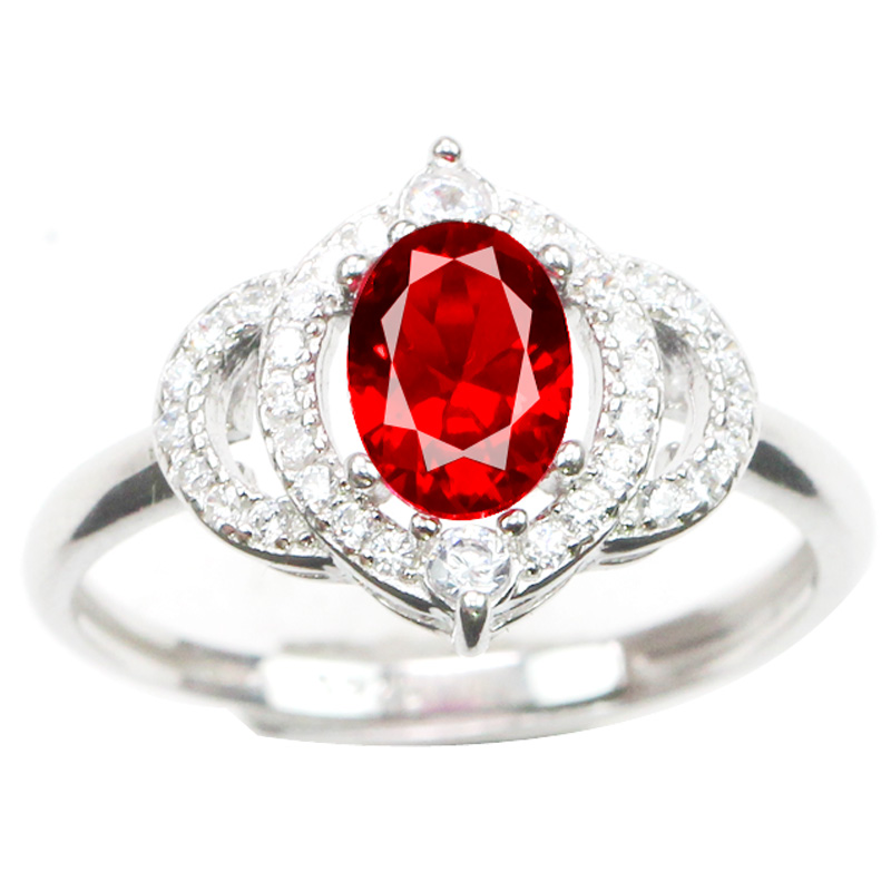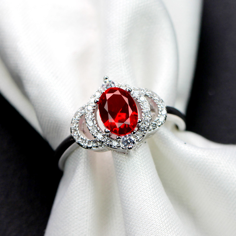 皇冠1克拉红宝石红色戒指女纯银渡18K白金时尚个性开口高级感配饰