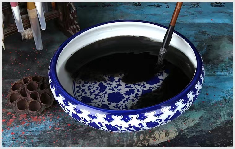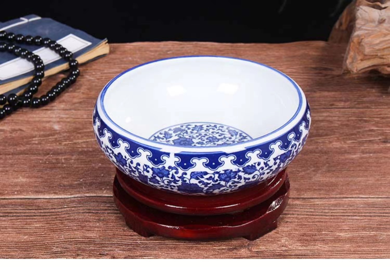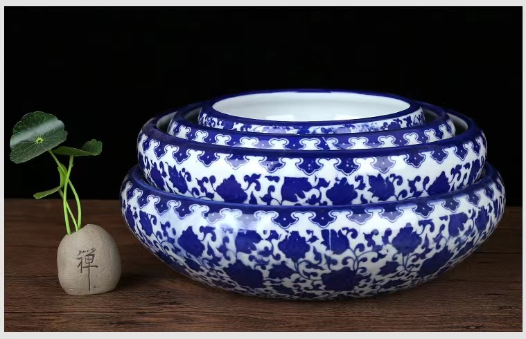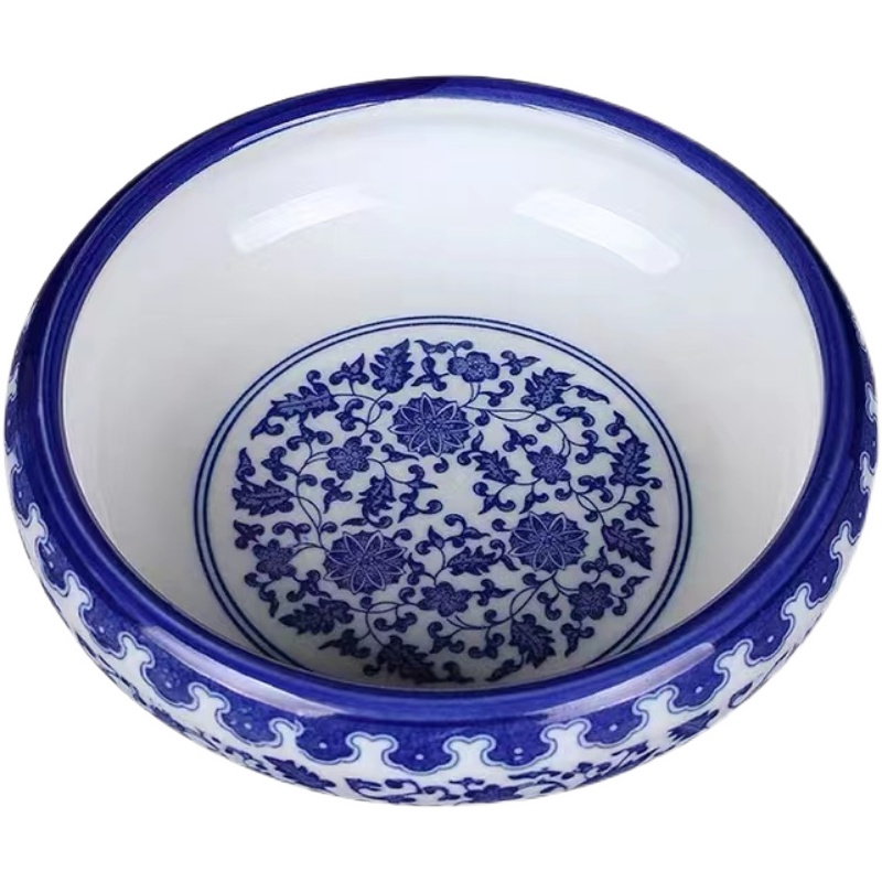 高温青花陶瓷笔洗水洗睡莲碗莲花盆鱼缸洗茶碗容器杯洗摆件