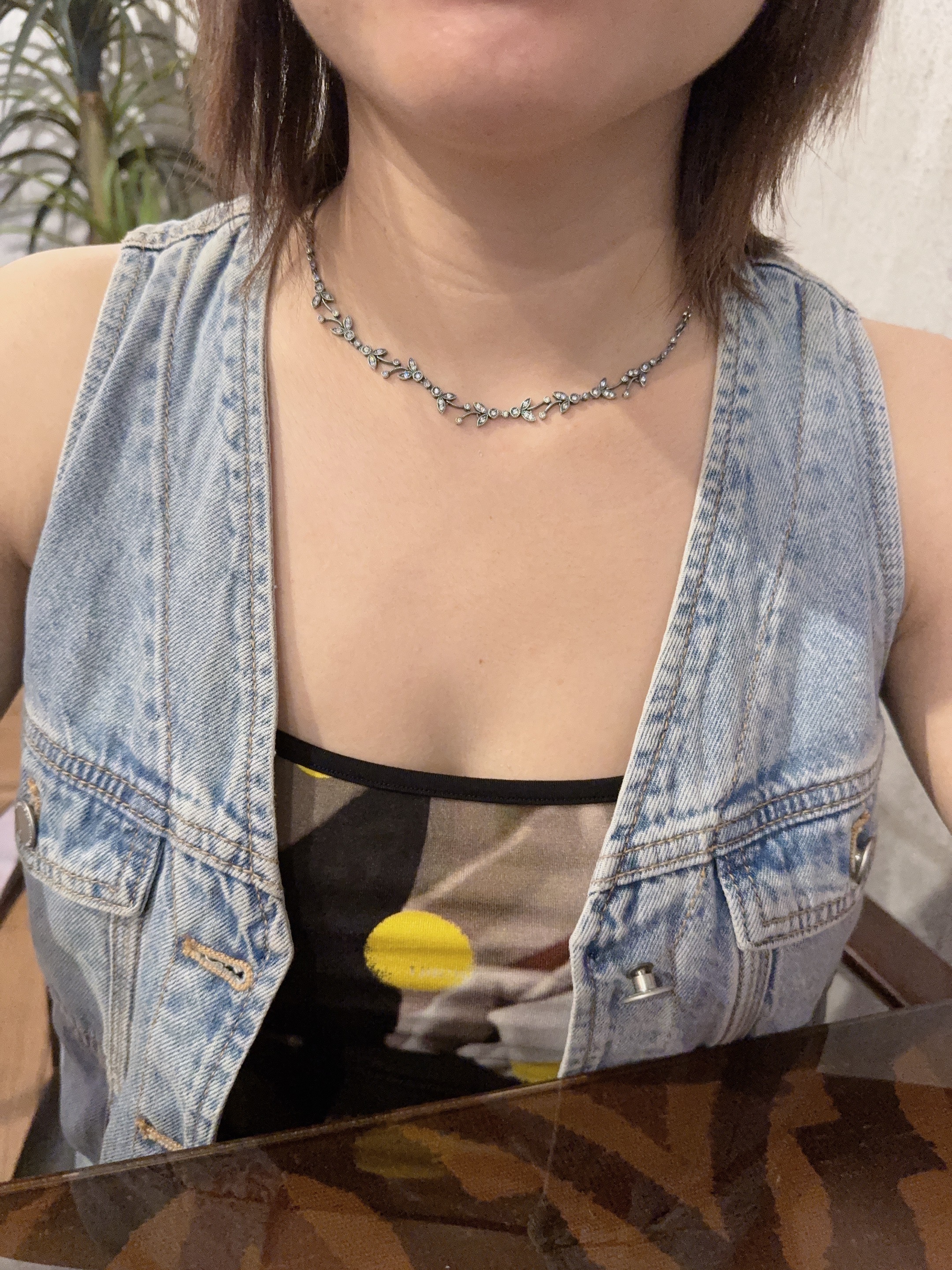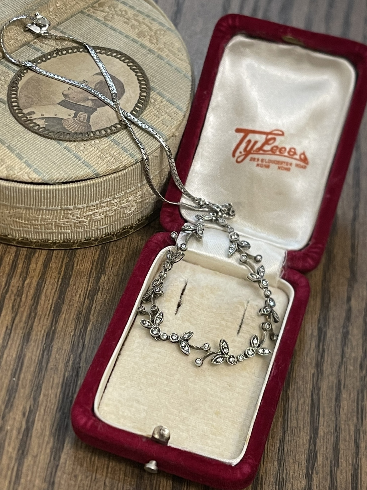 乔治时期古董设计勿忘我花叶元素通体925银一体链锁骨链留收藏女