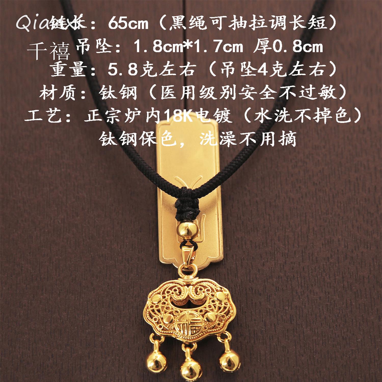 【洗澡不用摘】钛钢经典国风镂空金色平安长命锁铃铛吊坠黑绳项链