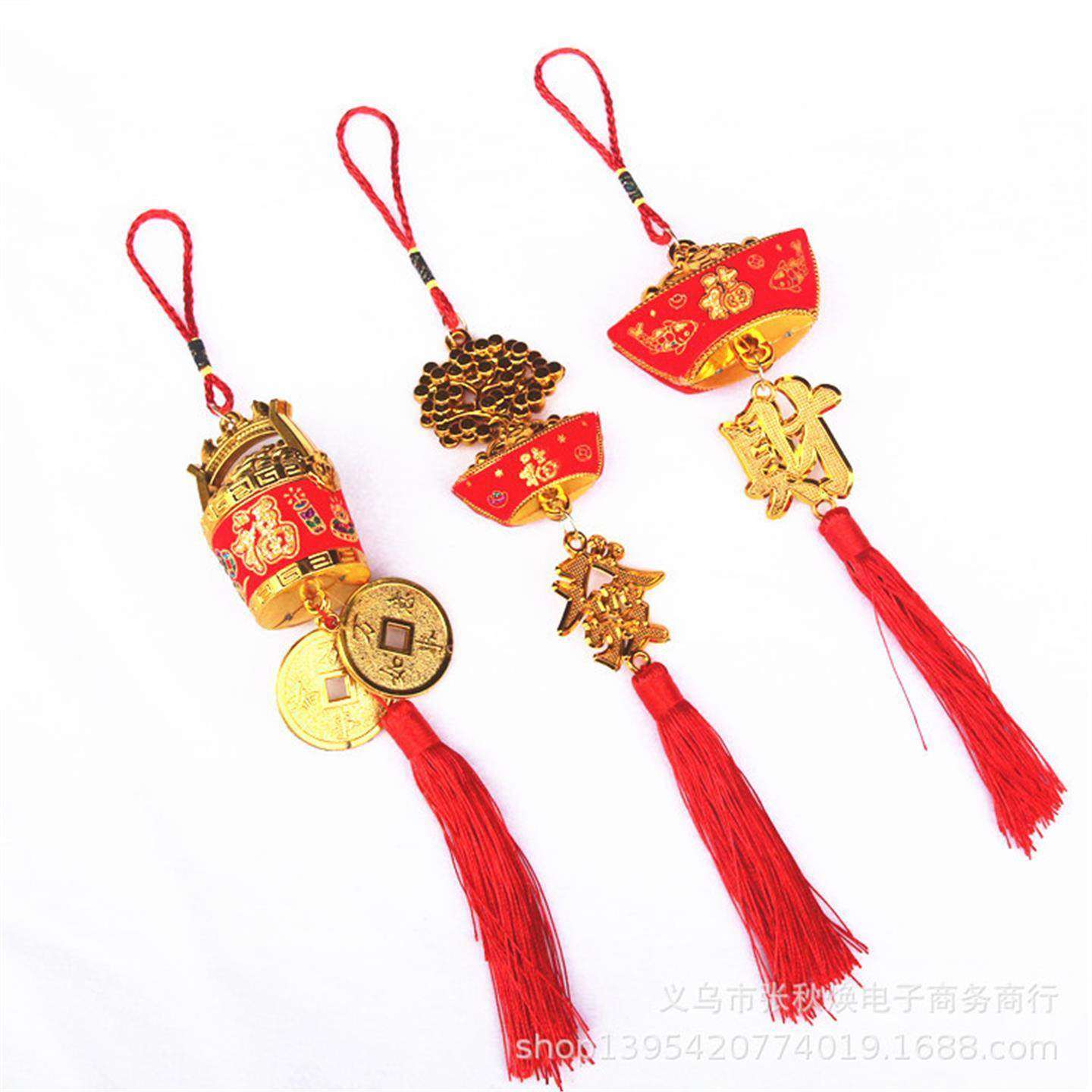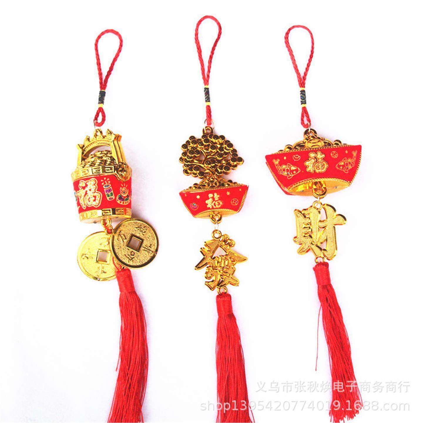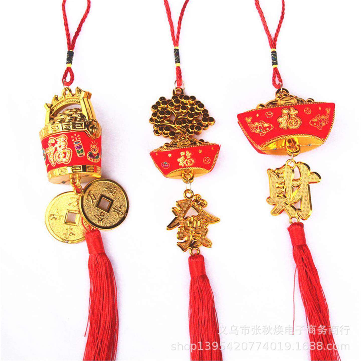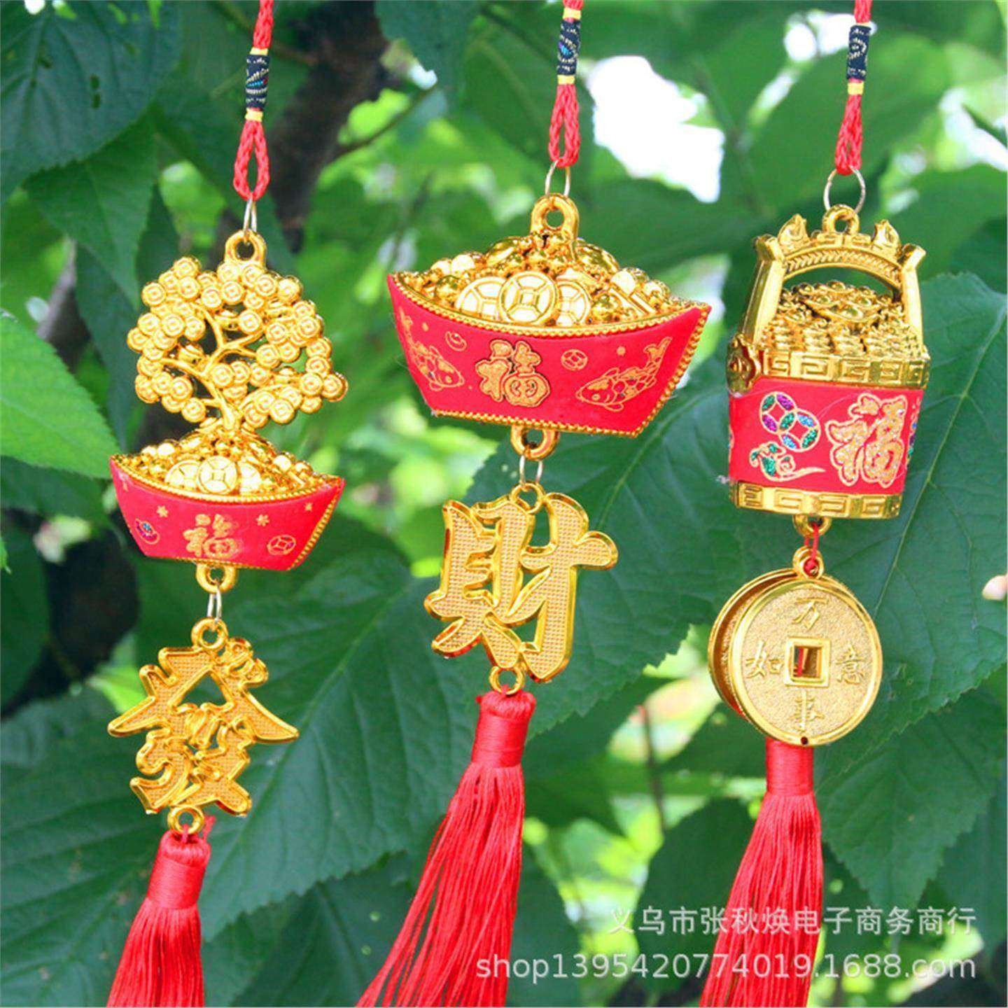新年春节金色贴布元宝发财树一桶金小挂件植物盆景装饰喜庆挂饰