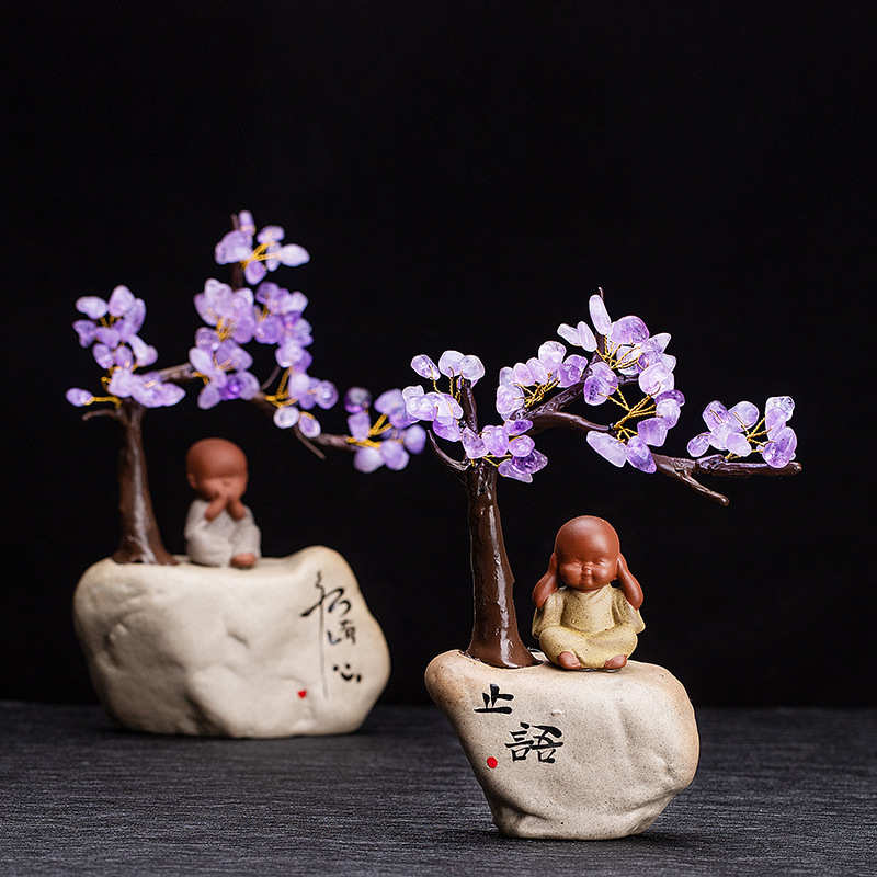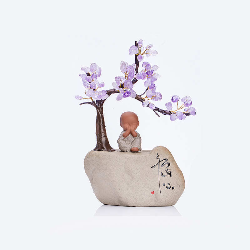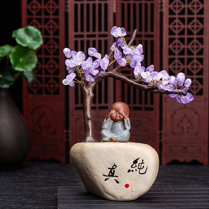 星雨 天然紫水晶树粗陶陶瓷摆件水晶花盆 室内家居办公桌创意摆件