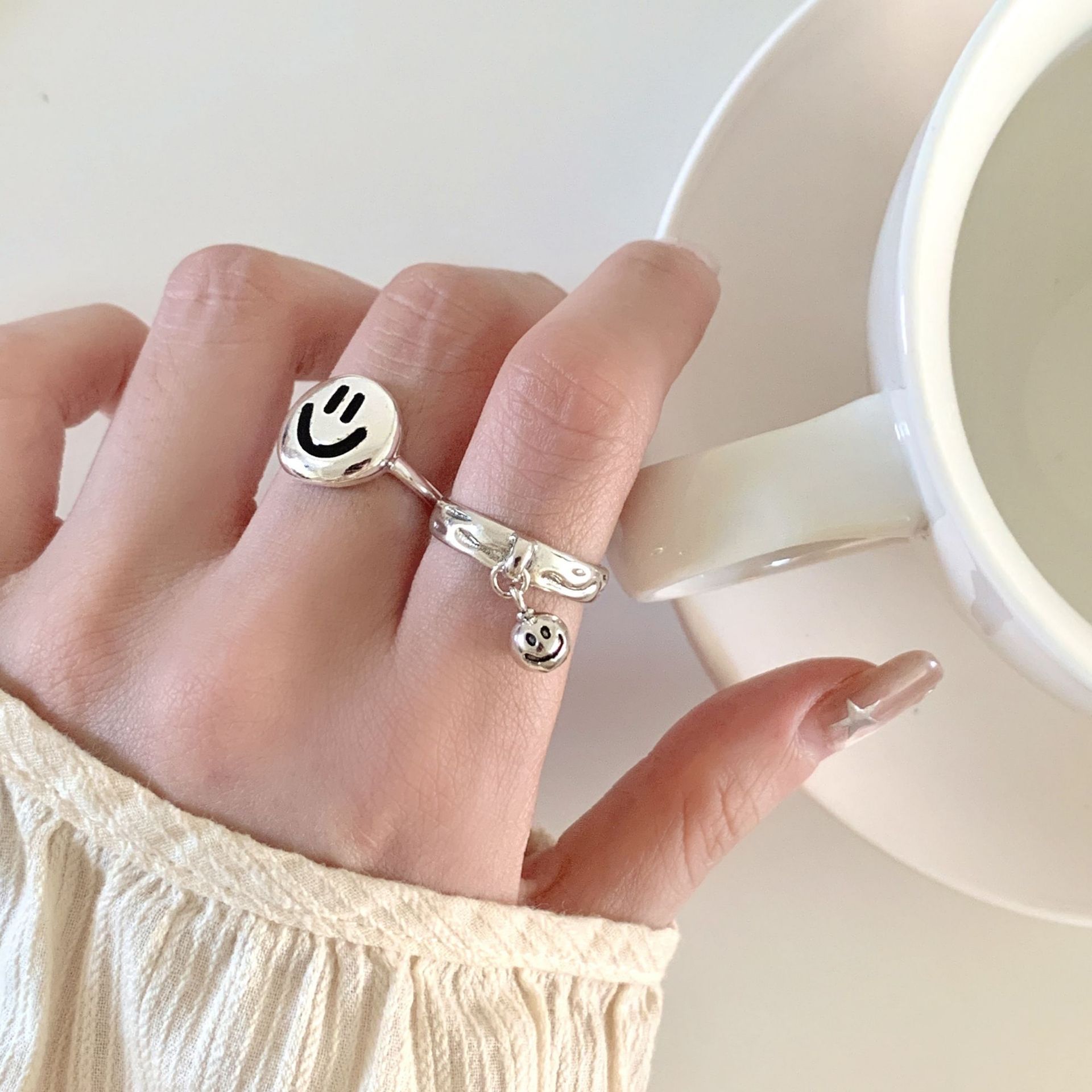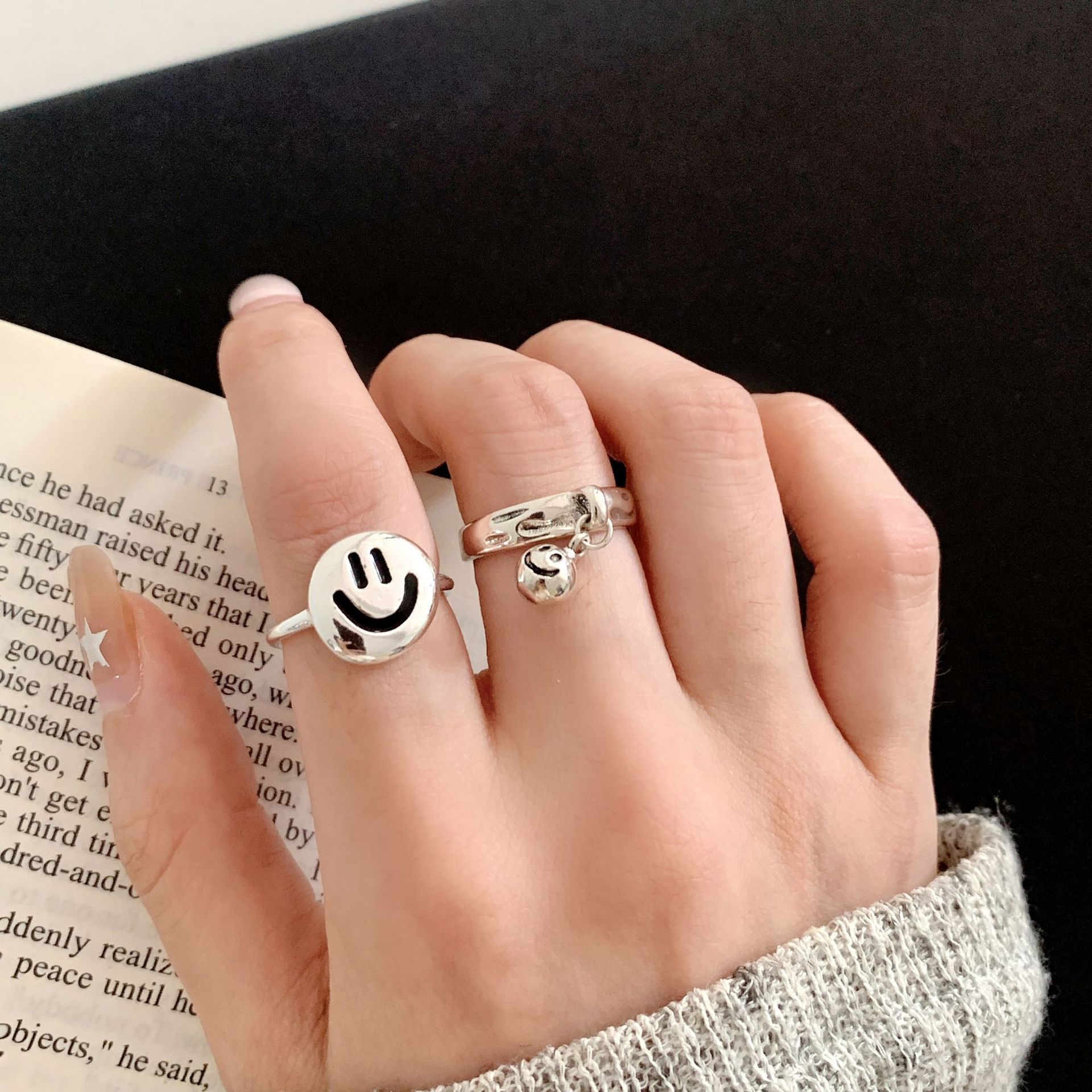 包邮甜美时尚吊坠戒指女韩版个性百搭开口指环小众设计感ins风食
