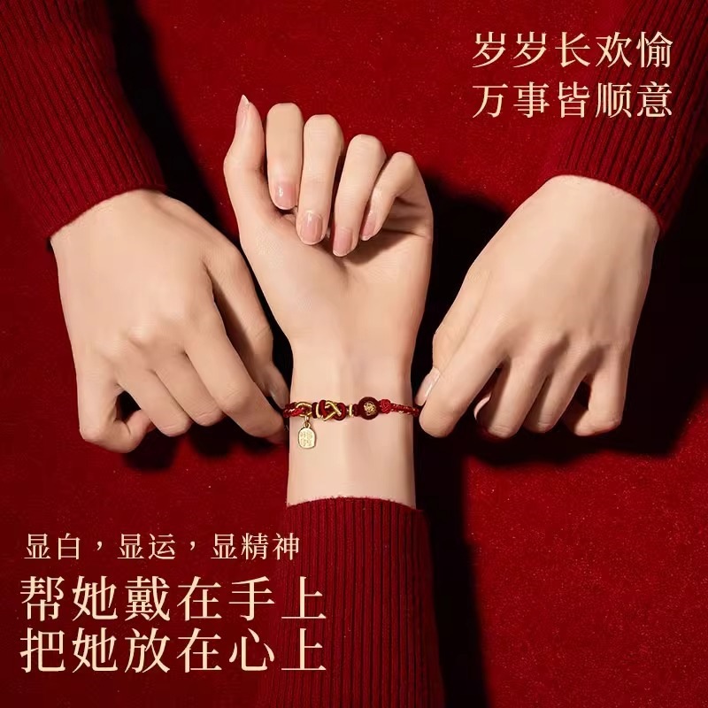 2025新款蛇年本命年红绳手链十二生肖红色编织绳五路财神手绳礼物