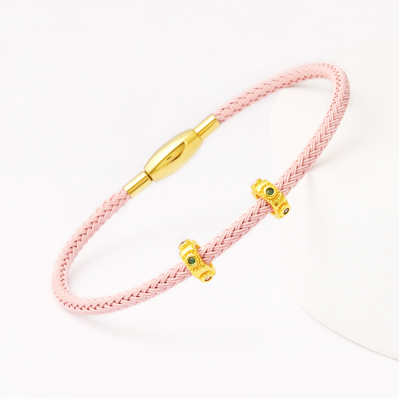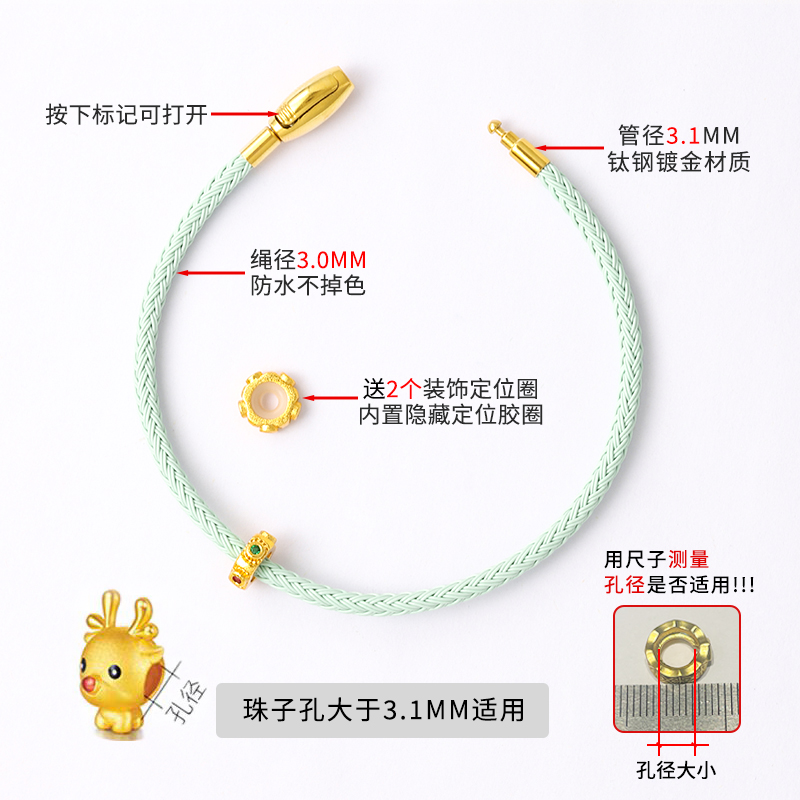 马卡龙色防水手绳适用于周家的黄金转运珠编织绳粉色蓝色皮绳手链
