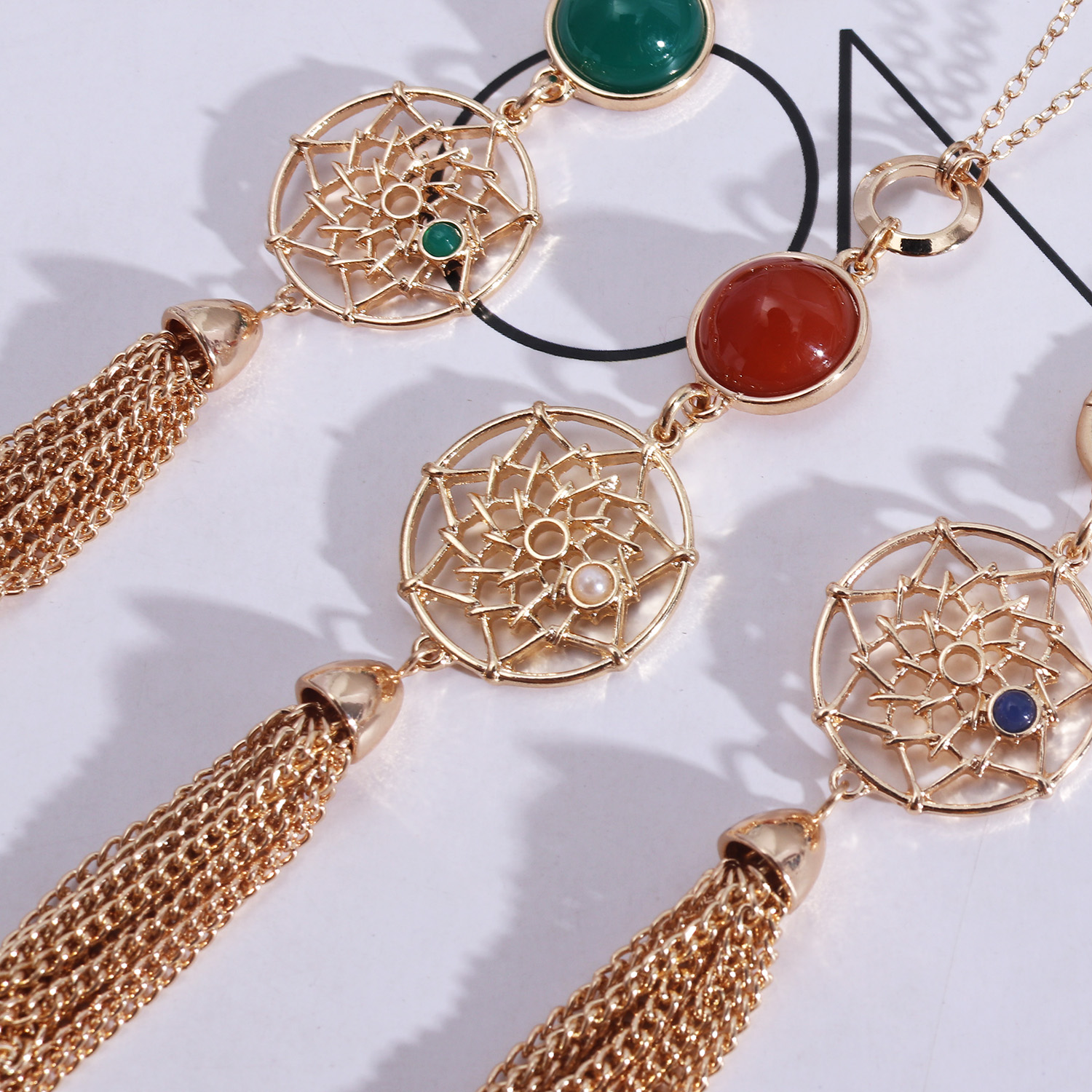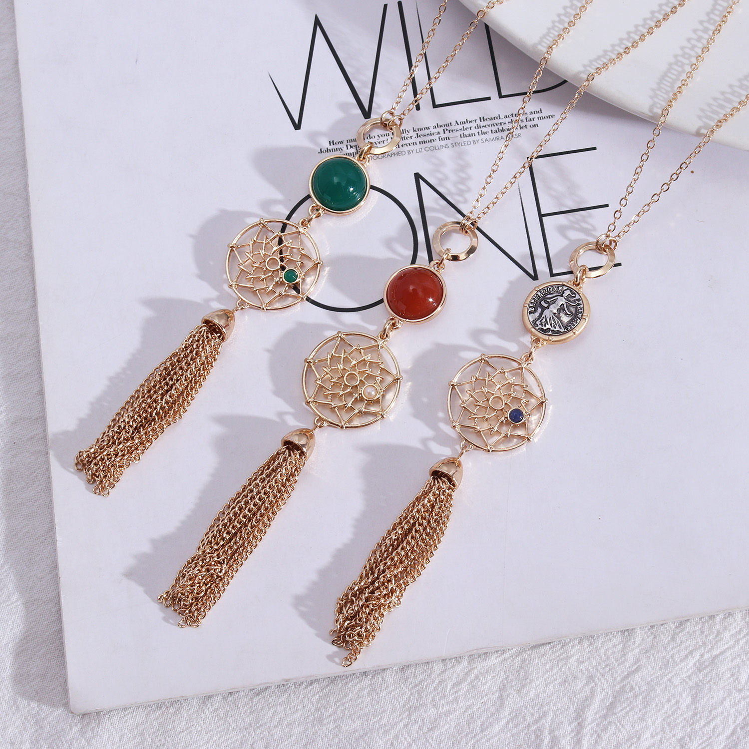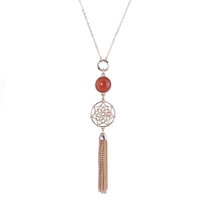 潮流设计开发 欧美风饰品 镂空花型时尚精美长款流苏项链女毛衣链