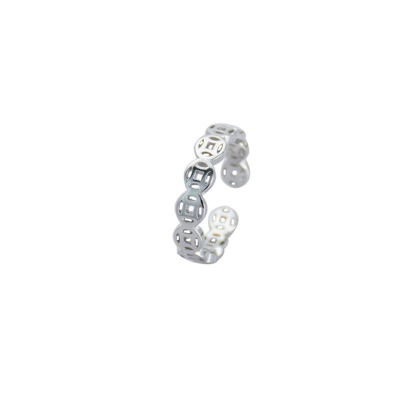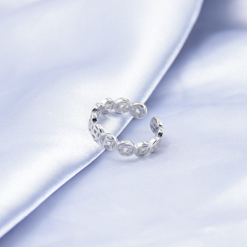 925纯银戒指女铜钱币轻奢高级感ins食指可调节开口指环中国风礼物