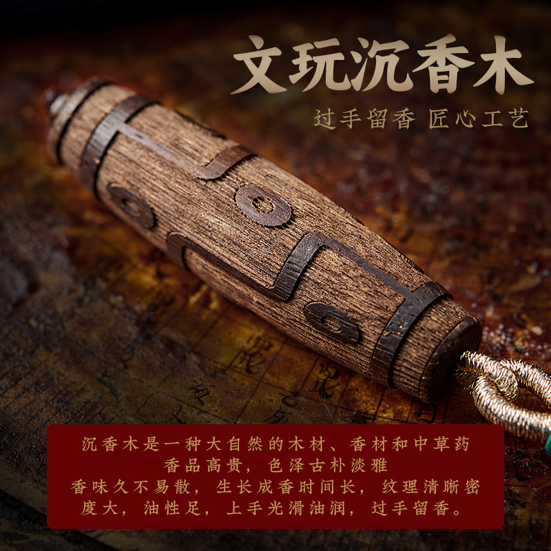 沉香木九眼天珠吊坠藏式本命佛木质挂件复古民族风毛衣链项链男女