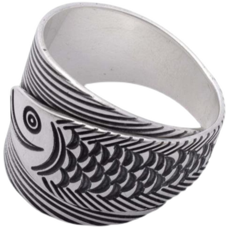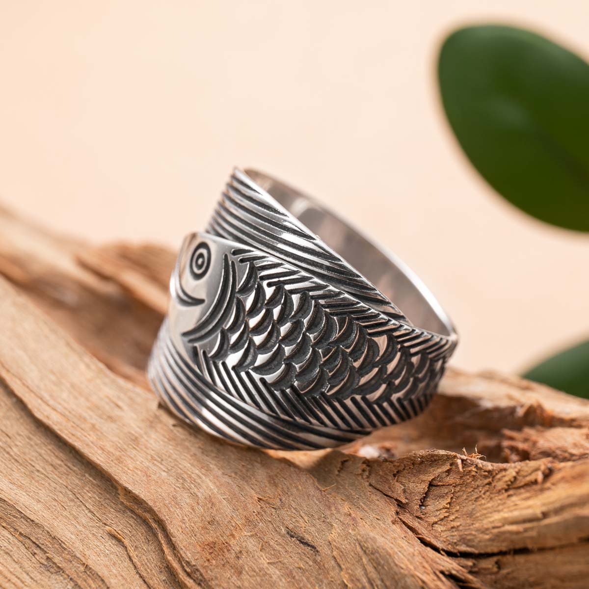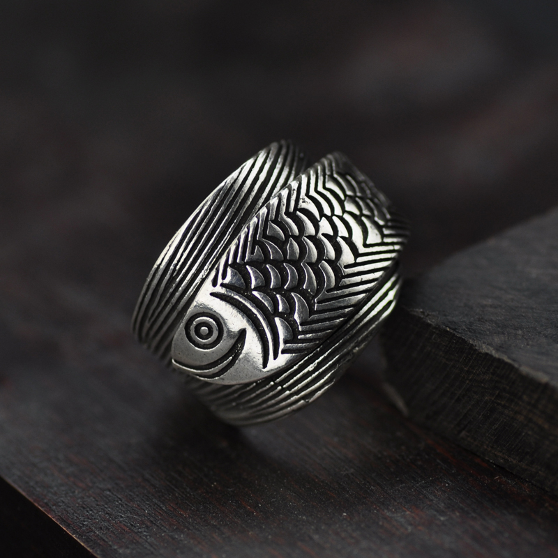 复古泰银富贵发财鱼戒指活口男女宽版转运招财戒民族风饰品日韩版
