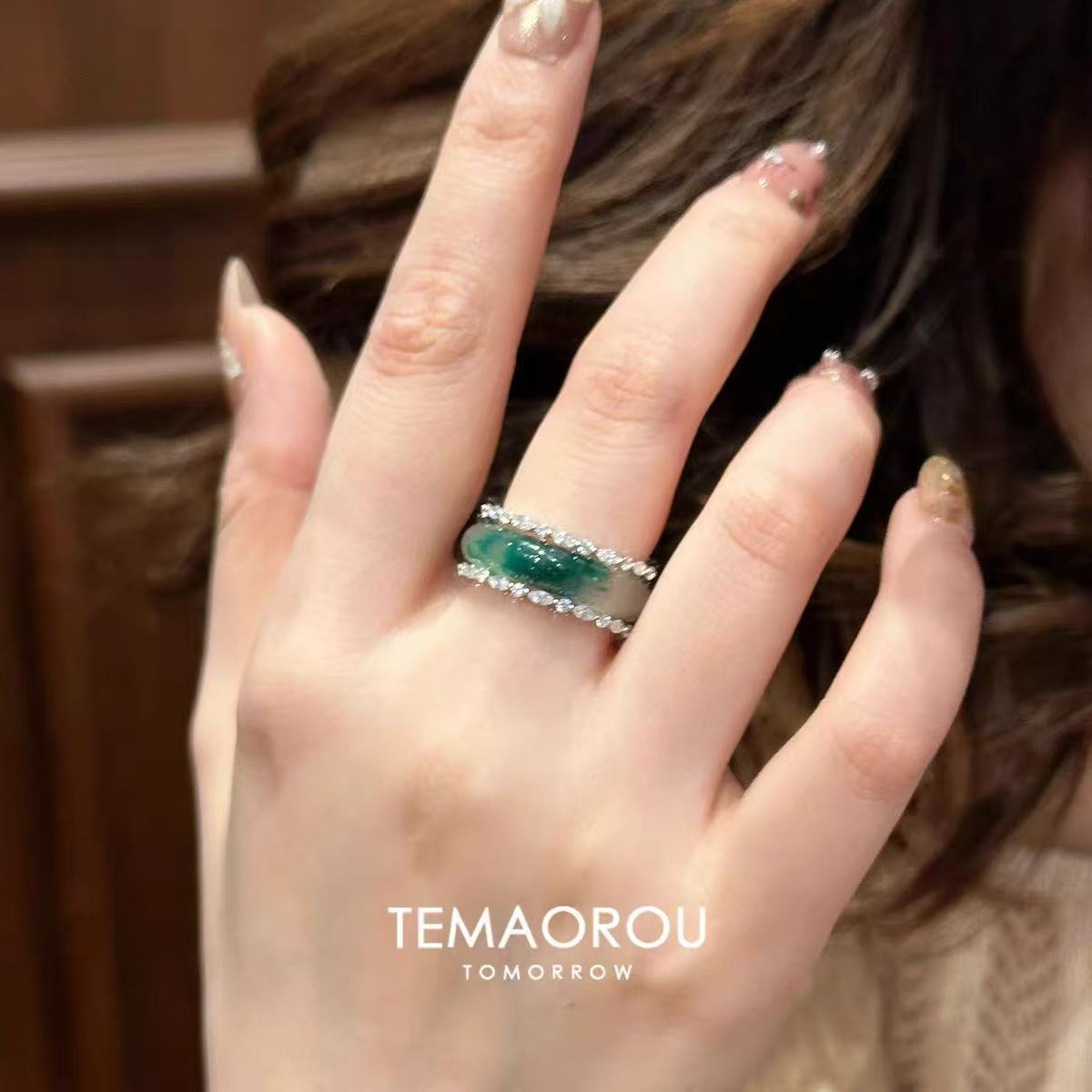 一款两戴~新中式绿色指环大气食指戒高端时尚高级戒指国风精致