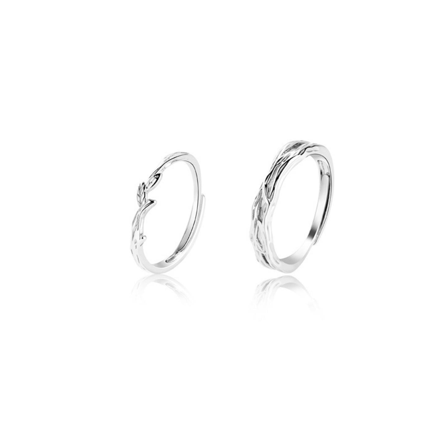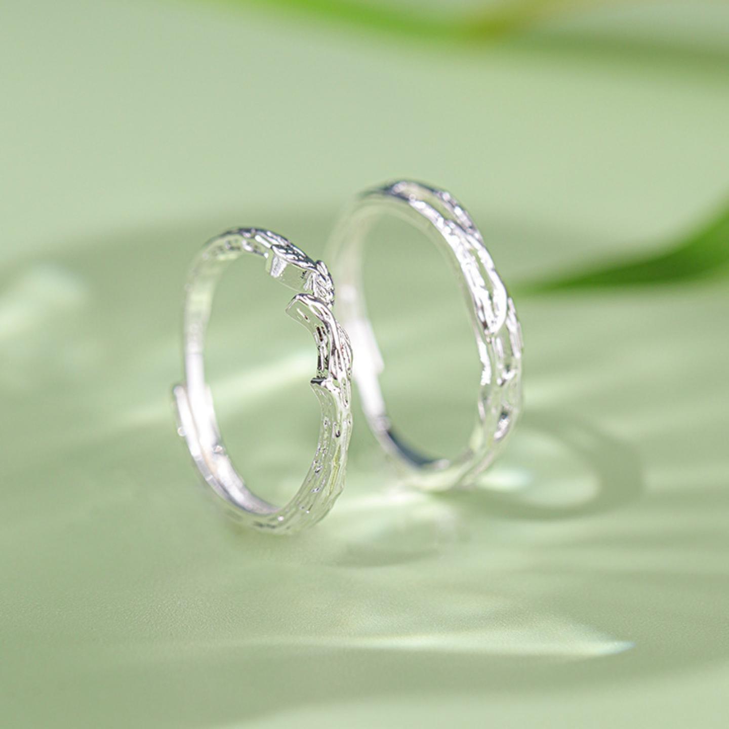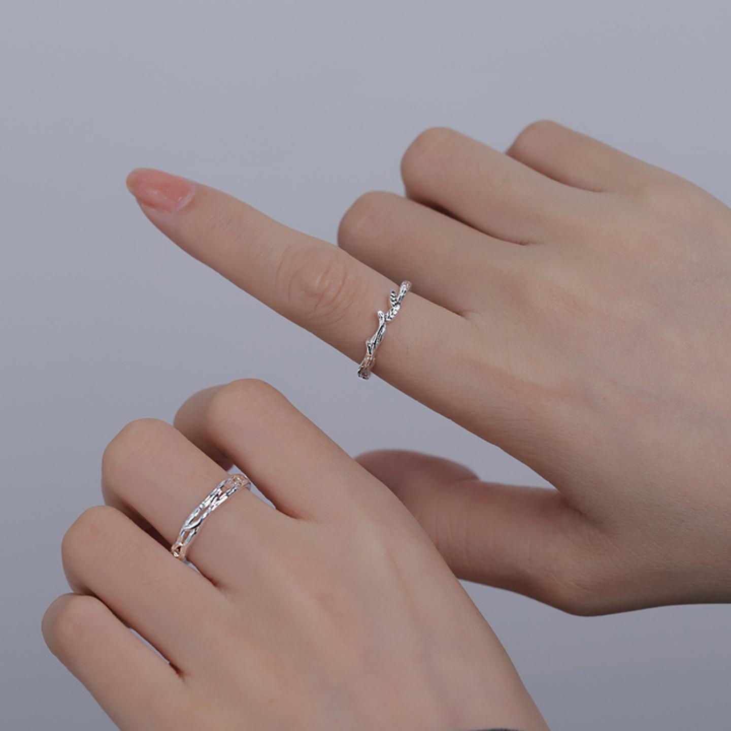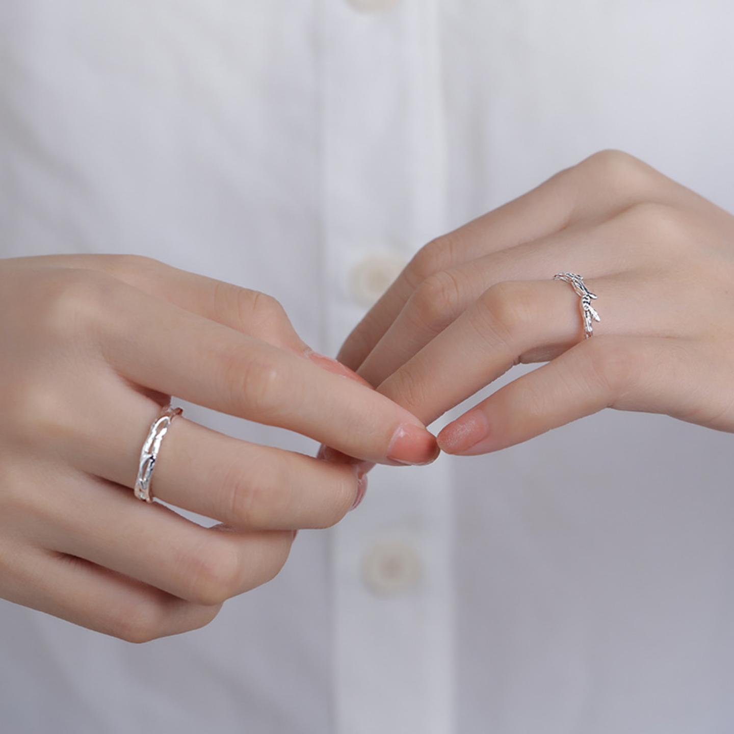 连理枝纯银情侣对戒时尚小众设计指环素圈个性开口戒指手饰品批发