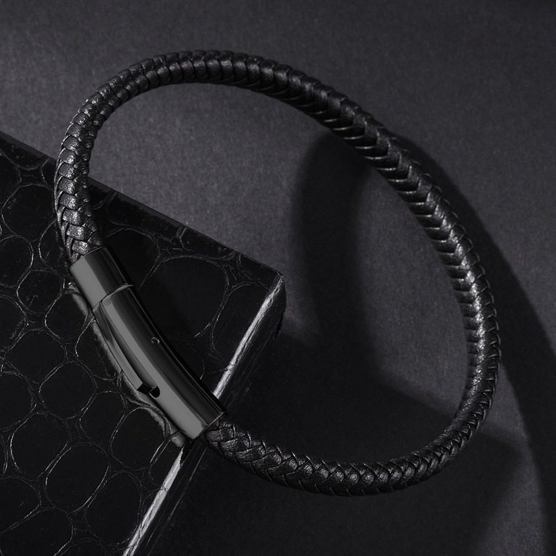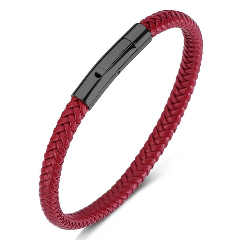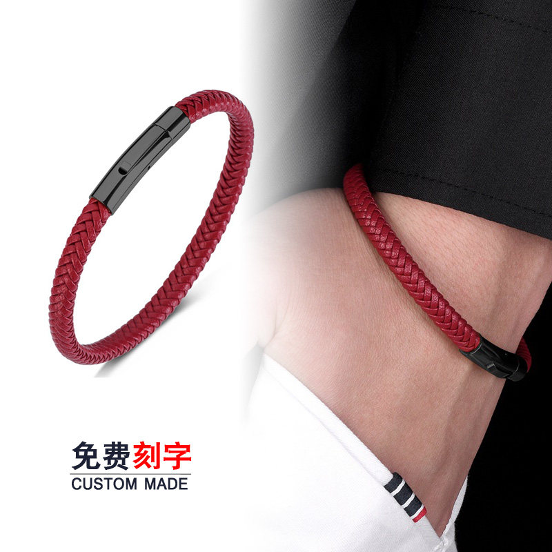 日韩时尚红色编织皮手链个性百搭黑色配饰手环男女本命年礼物刻字