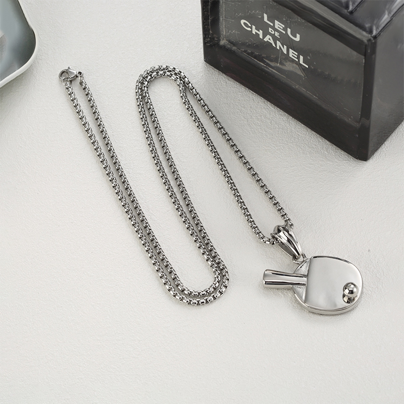 乒乓球项链轻奢小众球拍男潮夏季嘻哈设计感吊坠简约女情侣钛钢