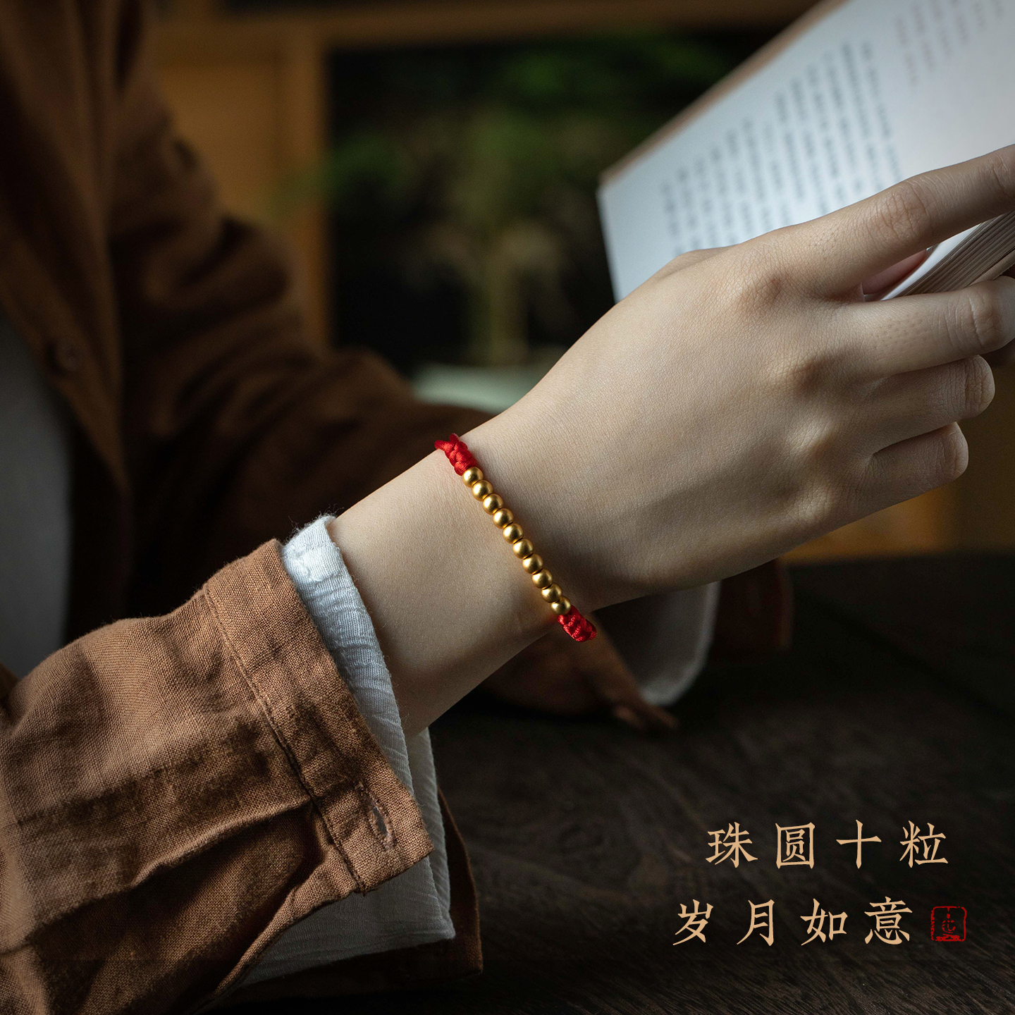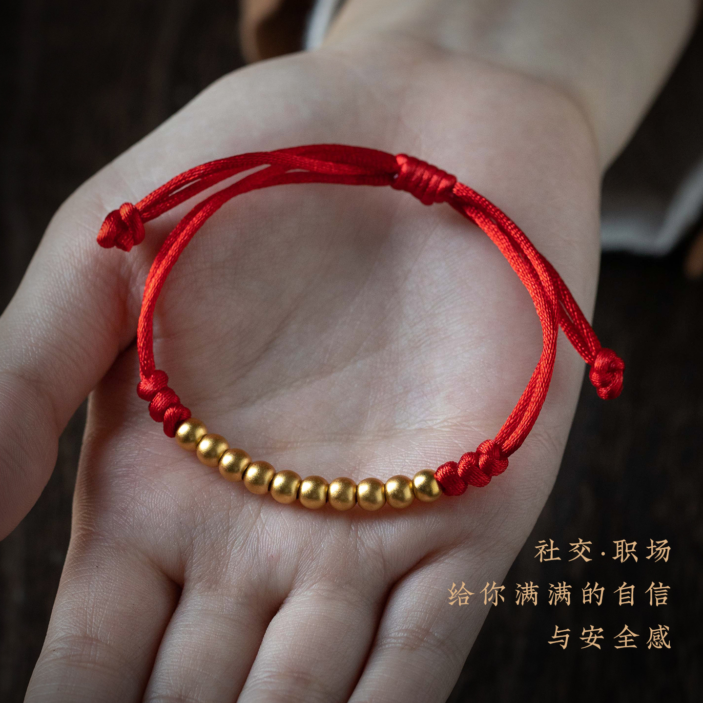 【设计师款】足银小金豆细手链本命年转运珠手工编织手绳生日礼物
