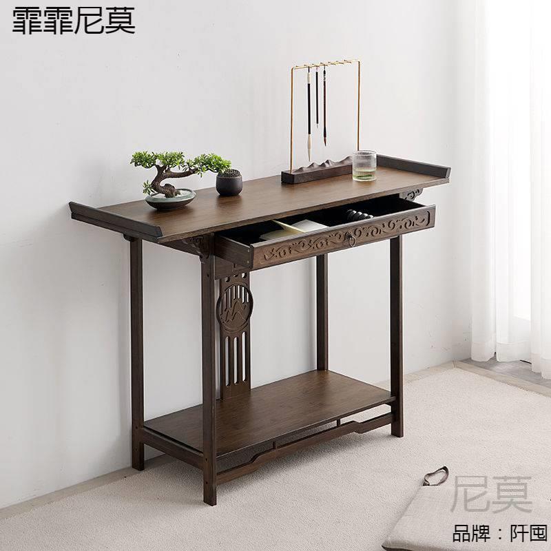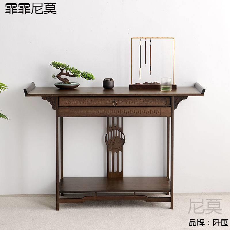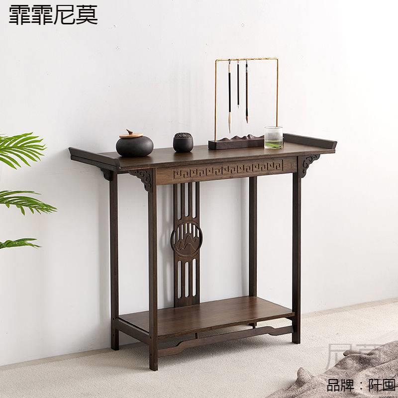 .新中式玄关桌窄长条案供桌现代靠墙案台供奉桌子胡桃色实木端景