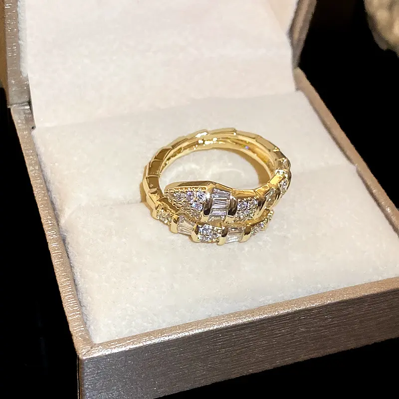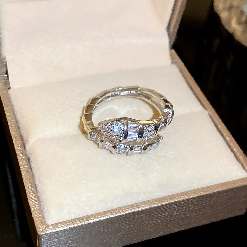 蛇形锆石开口戒指欧美时尚个性轻奢食指戒小众气质设计感手饰