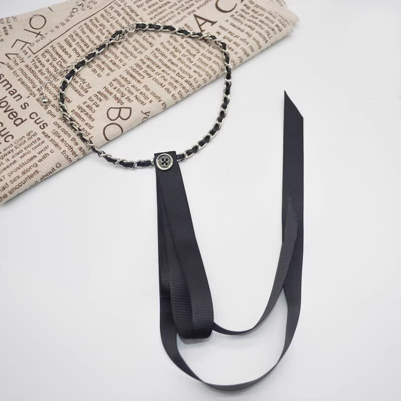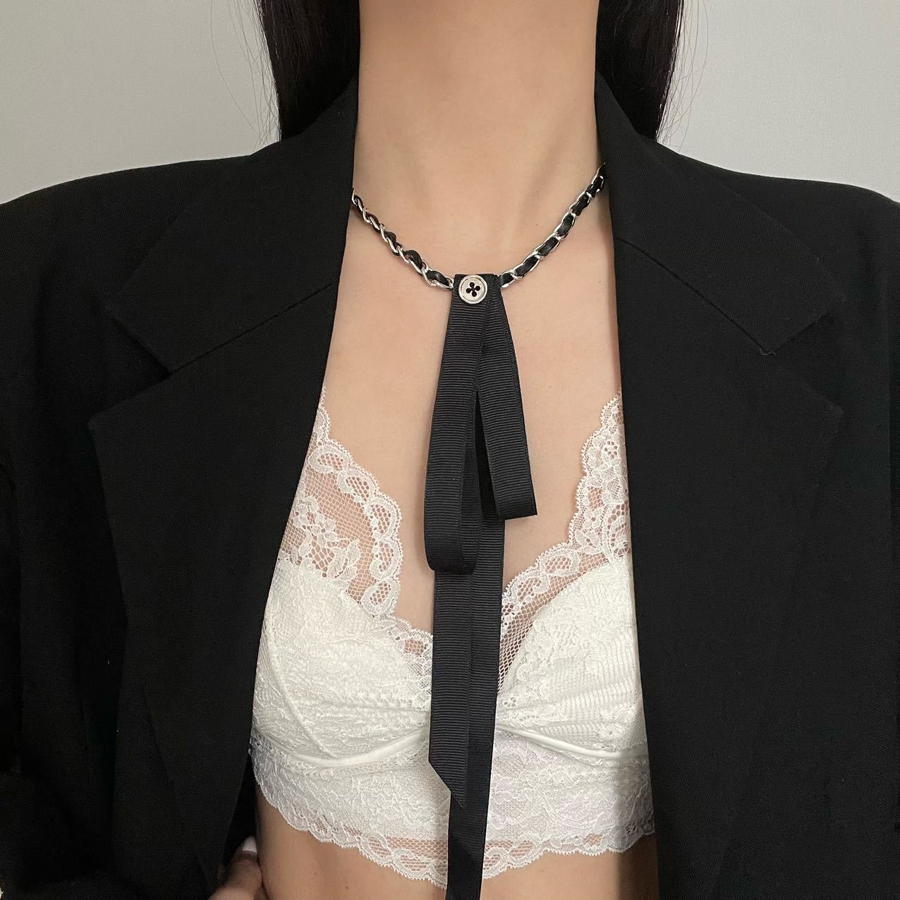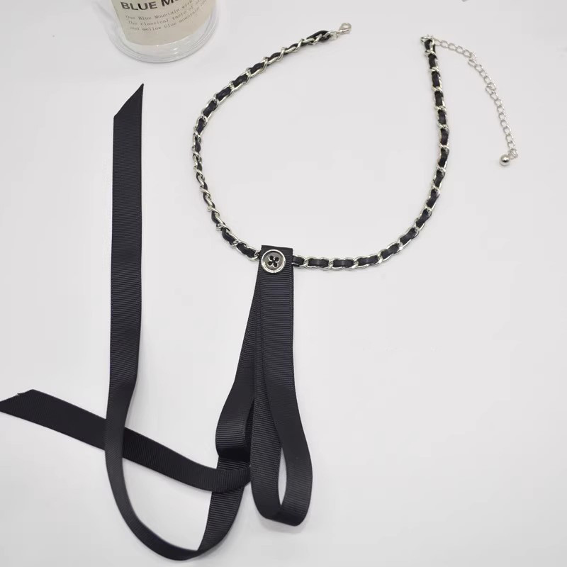 黑色系带蝴蝶结皮绳编织蕾丝飘带项链女学院风百搭锁骨链颈带丝巾