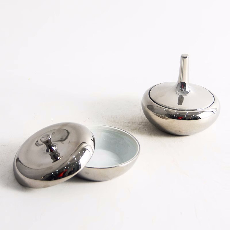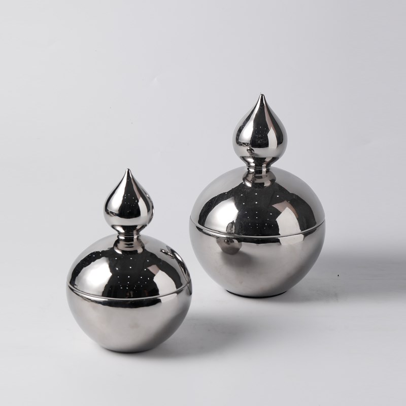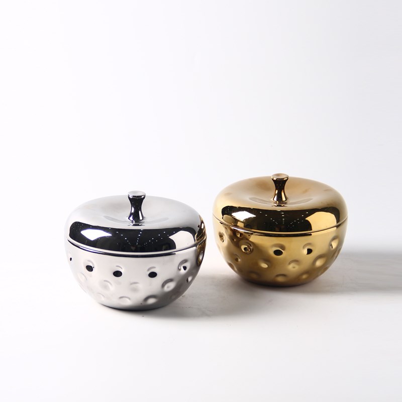 现代简约电镀金银色陶瓷储物罐摆件样板间茶几零食糖果收纳罐装饰