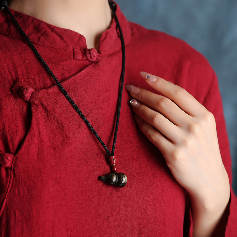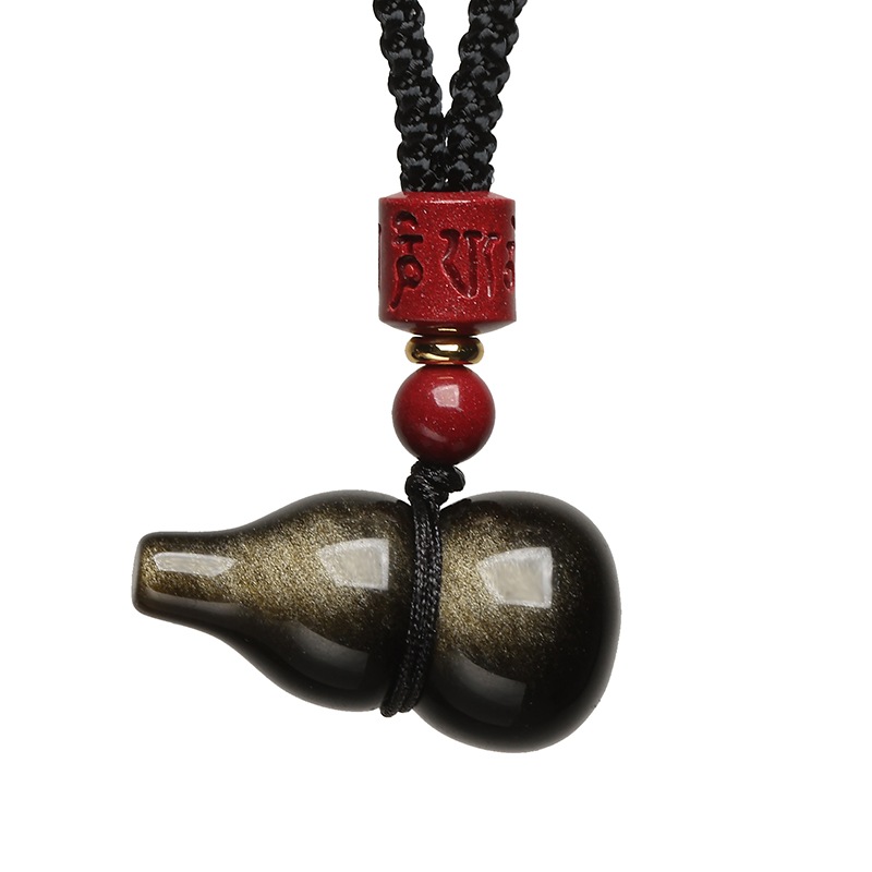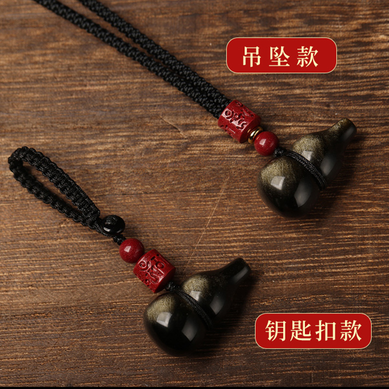 天然黑曜石葫芦吊坠男女本命年金曜石钥匙扣挂件项链刻字定制礼物