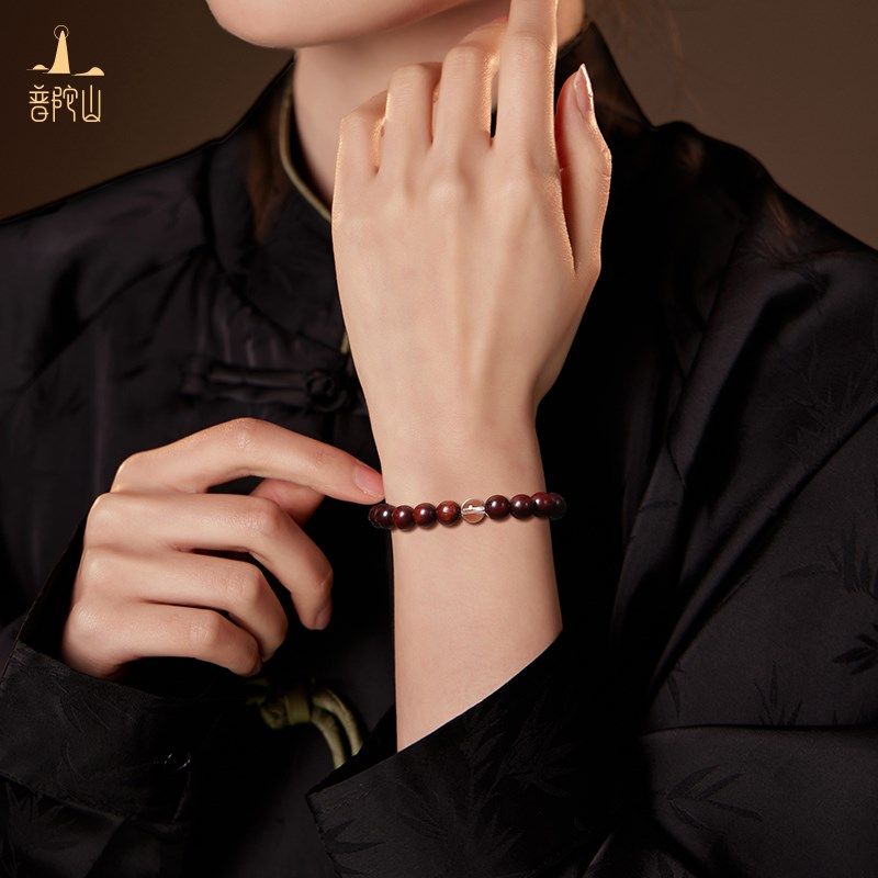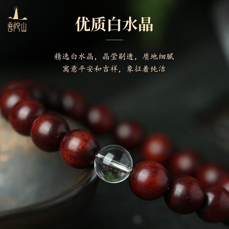 普陀山天然小叶紫檀白水晶手串女檀香木手持佛珠男转运珠情侣手链