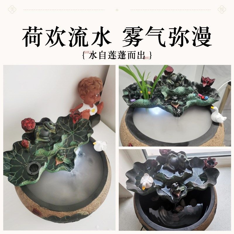 古法养鱼缸加湿器生态造景碗莲陶瓷盆家用阳台小鱼池小型装饰鱼缸