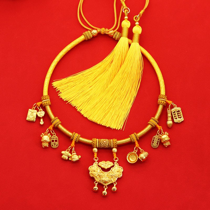 宝宝项圈婴儿百天抓周国风项链金锁编绳儿童编织红绳满月周岁送礼