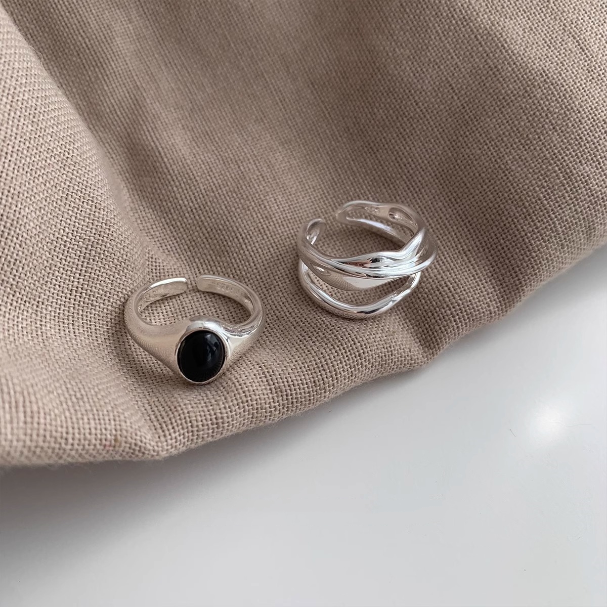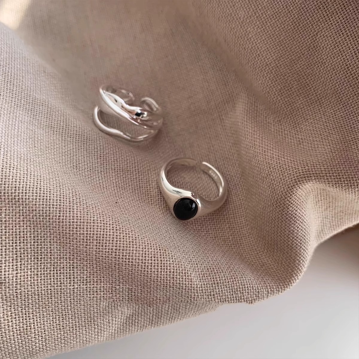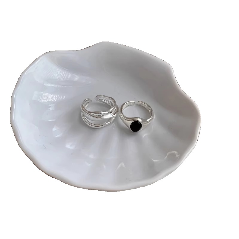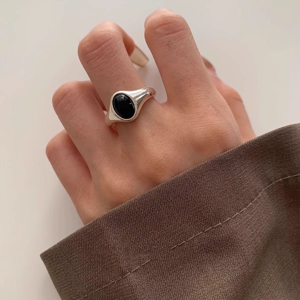 925纯银黑玛瑙椭圆形戒指女ins风轻奢小众设计感时尚简约开口指环